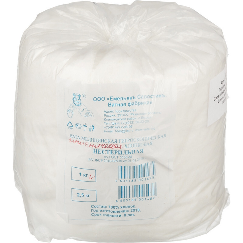 Перевяз. ср-ва Вата гигиен. нестер. 1кг Емельяновская 15шт/уп 1 шт.