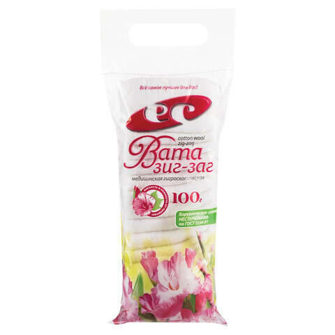 Вата медицинская нестерильная ЗИГ-ЗАГ, 100 гр.