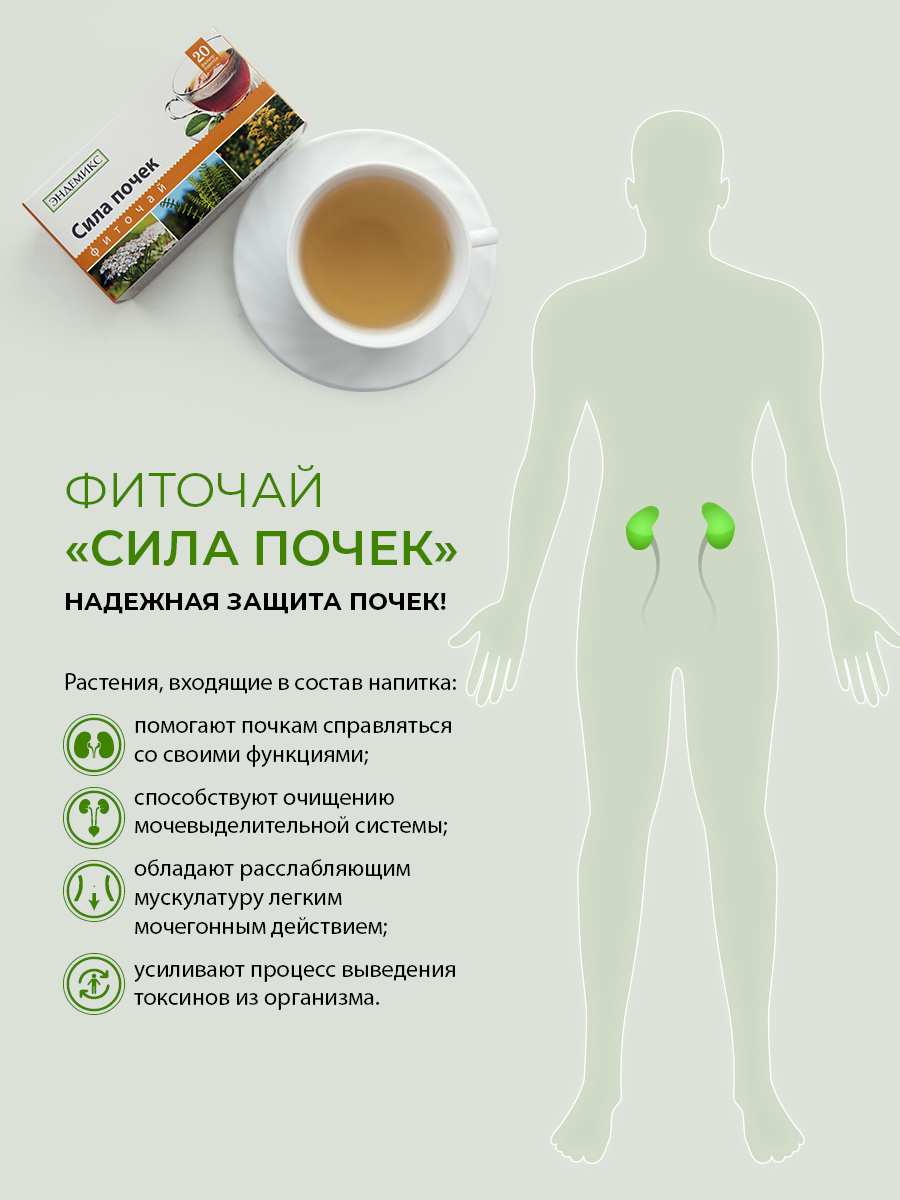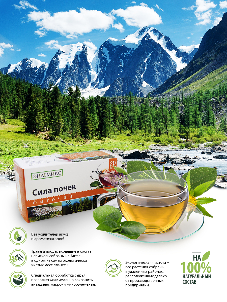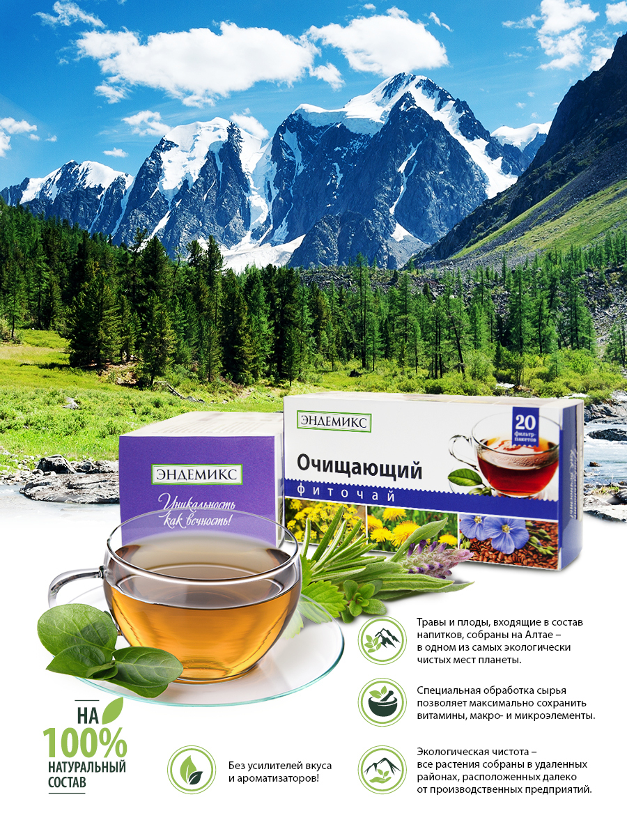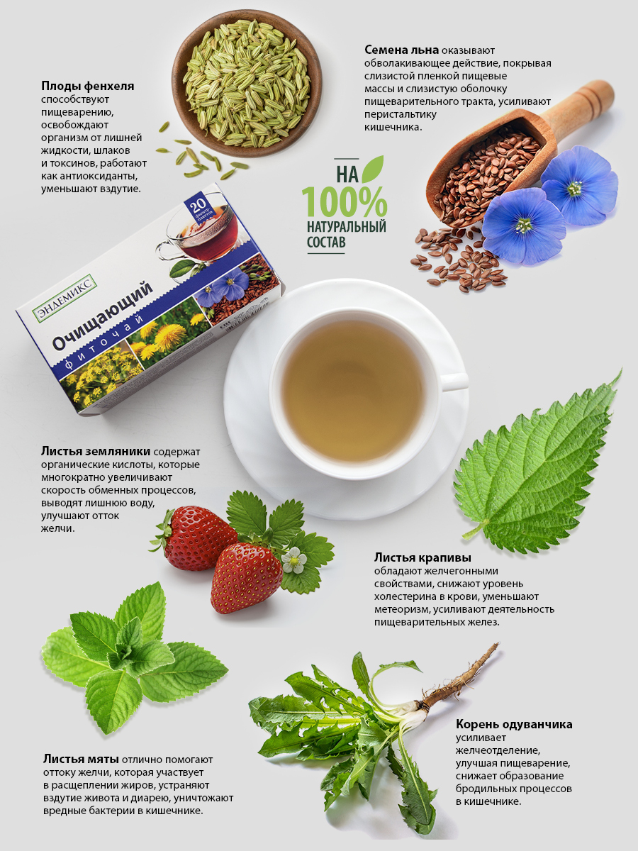 Травяной чай Эндемикс "Очищающий" детокс для желудочно-кишечного тракта и почек. 20 пакетиков по 2г.