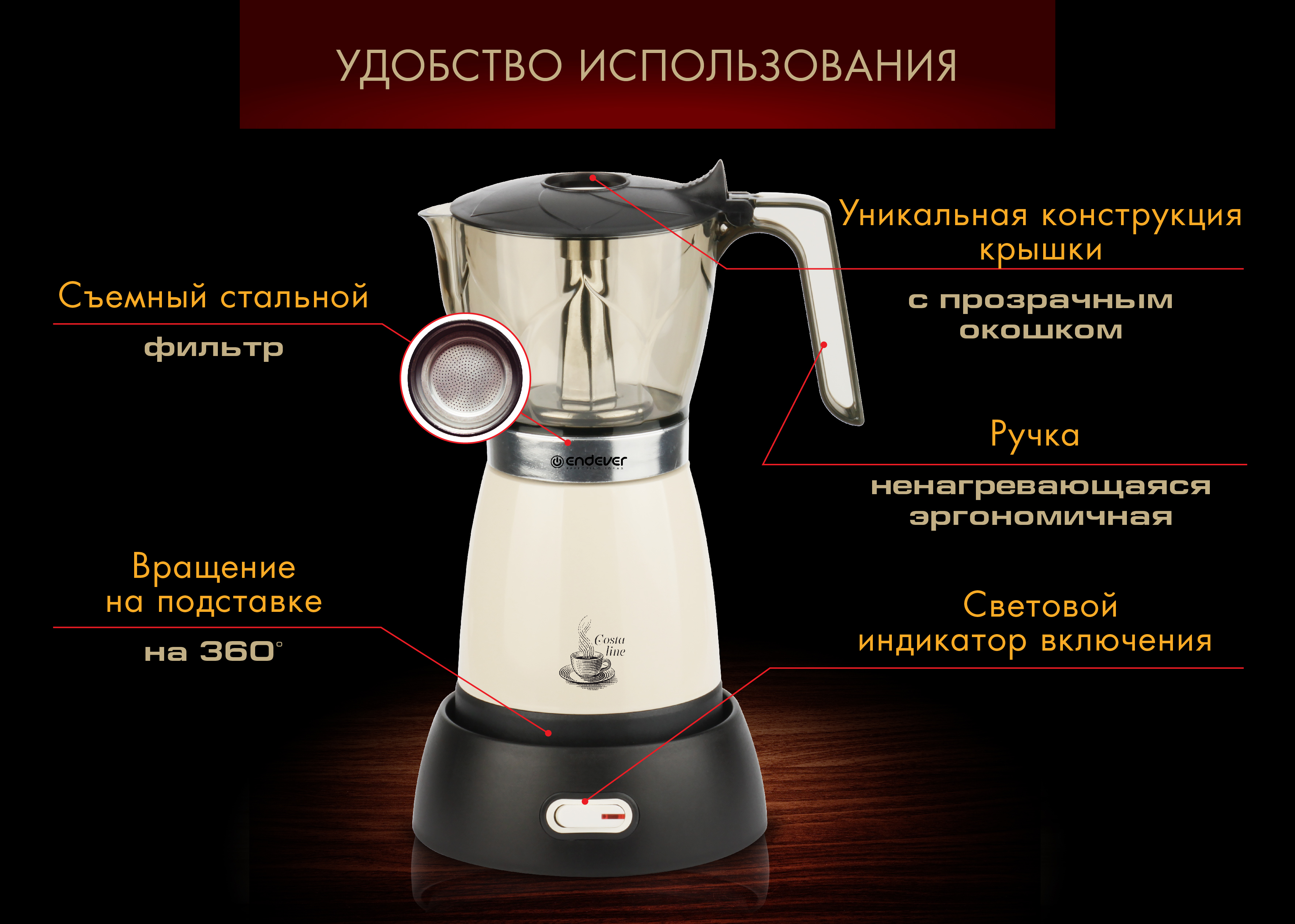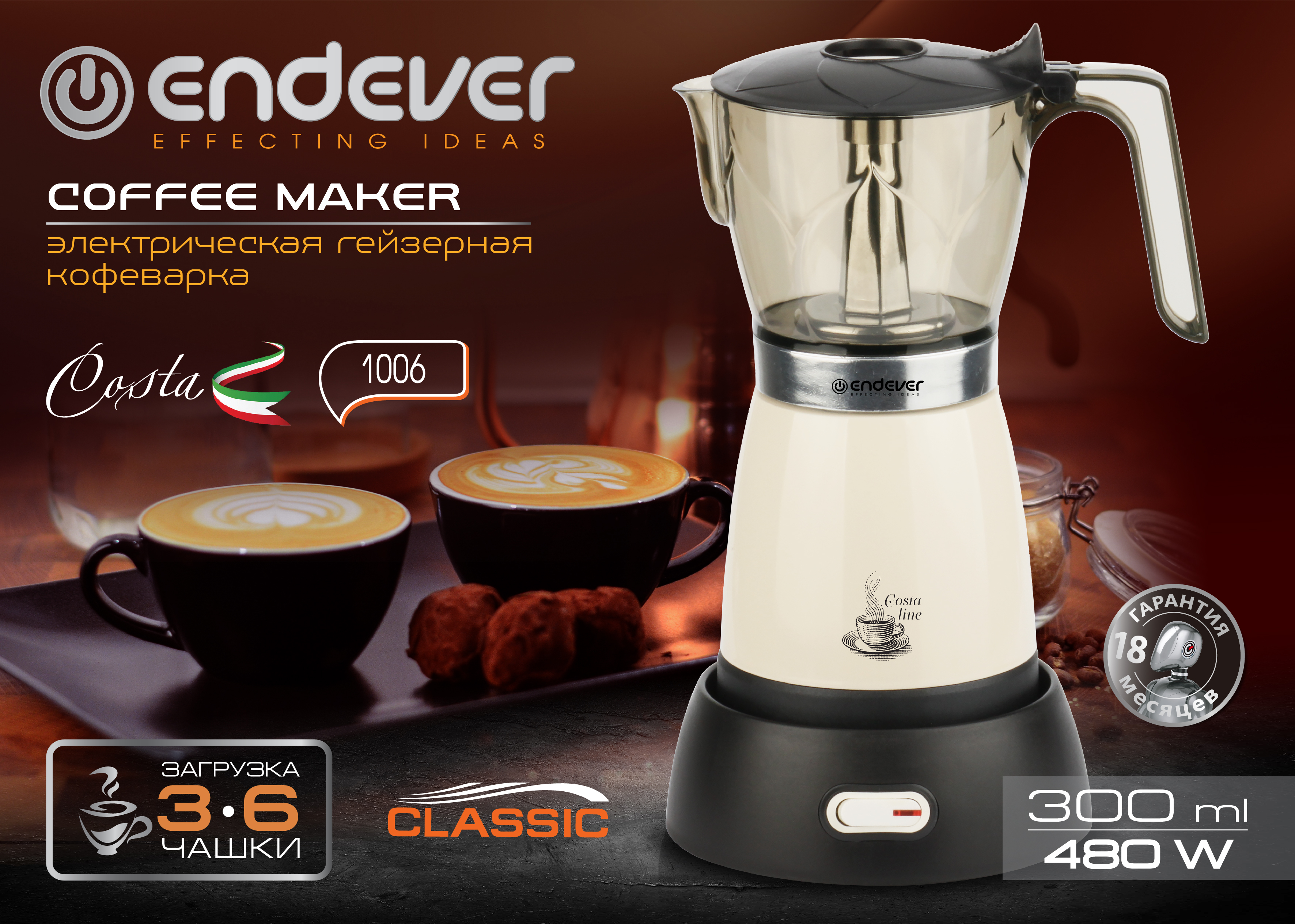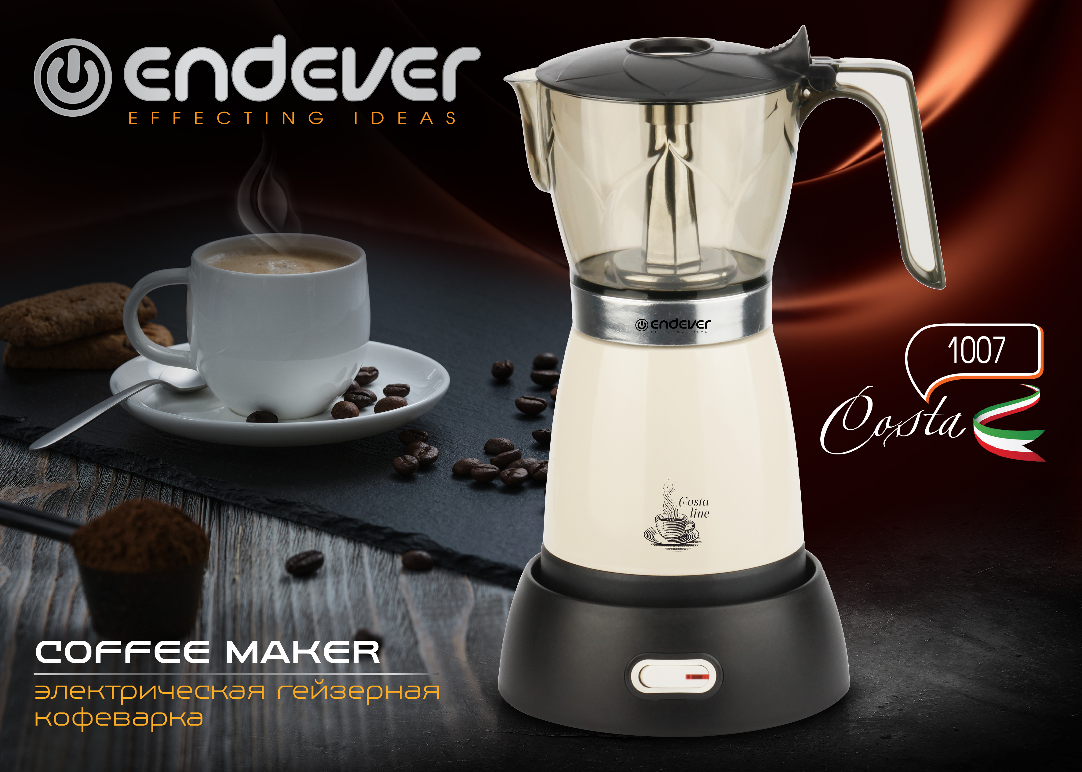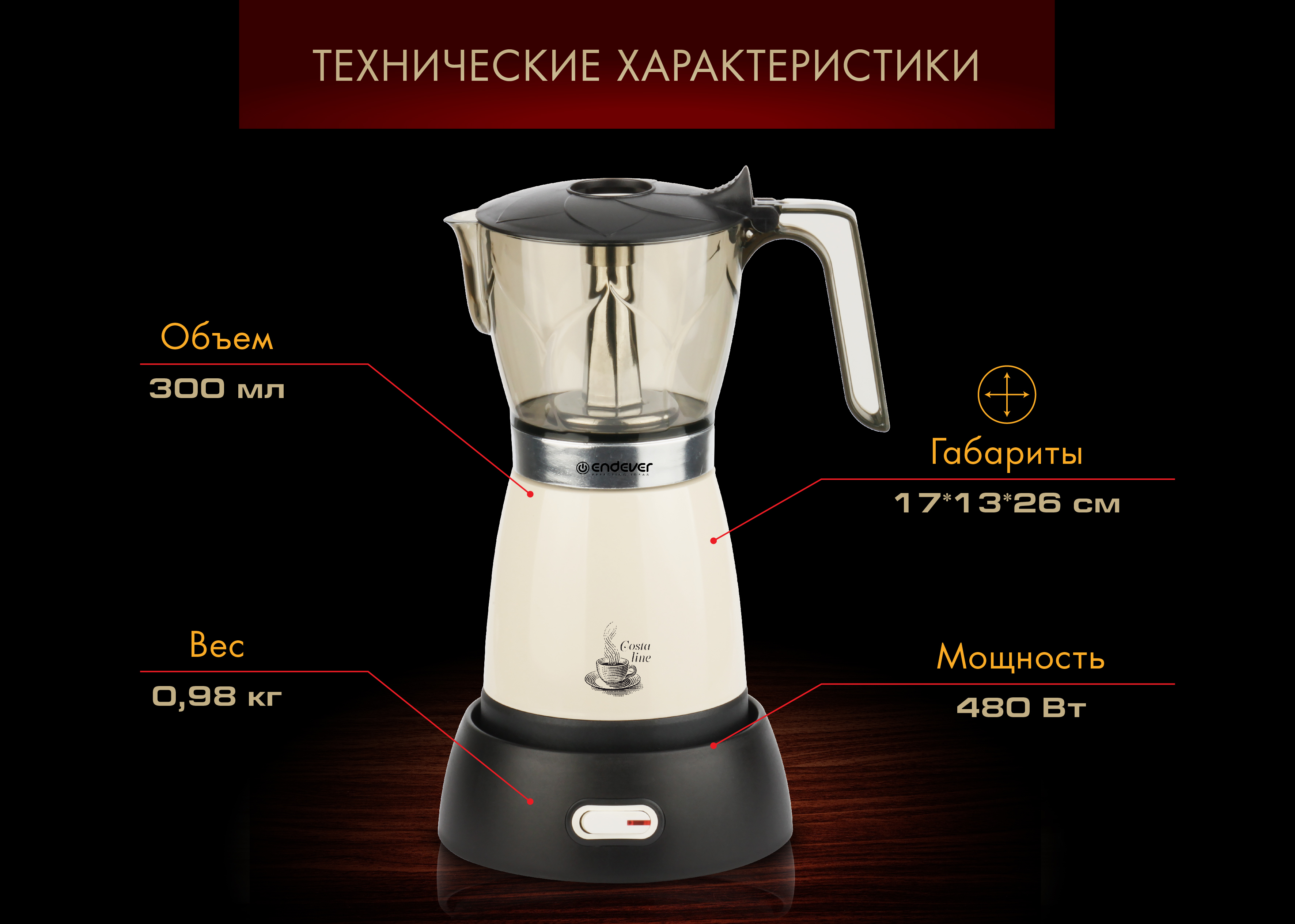 Кофеварка гейзерная электрическая Endever Venice-6001, бежевый