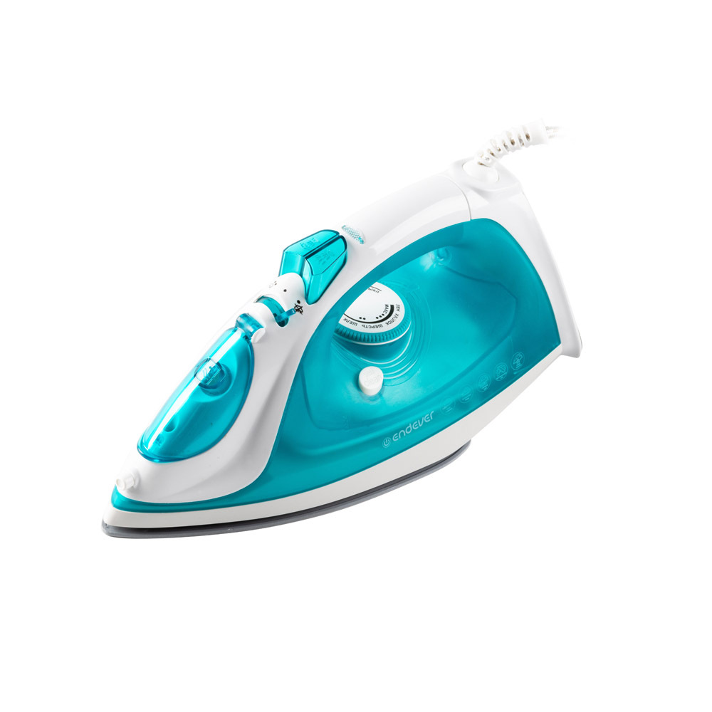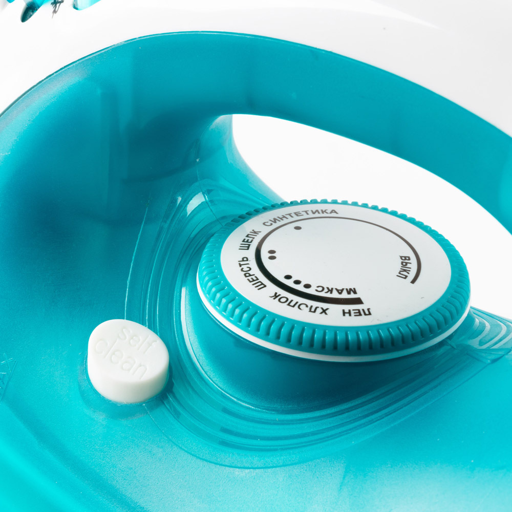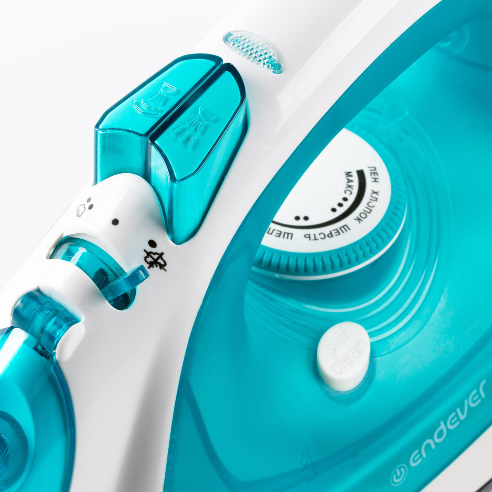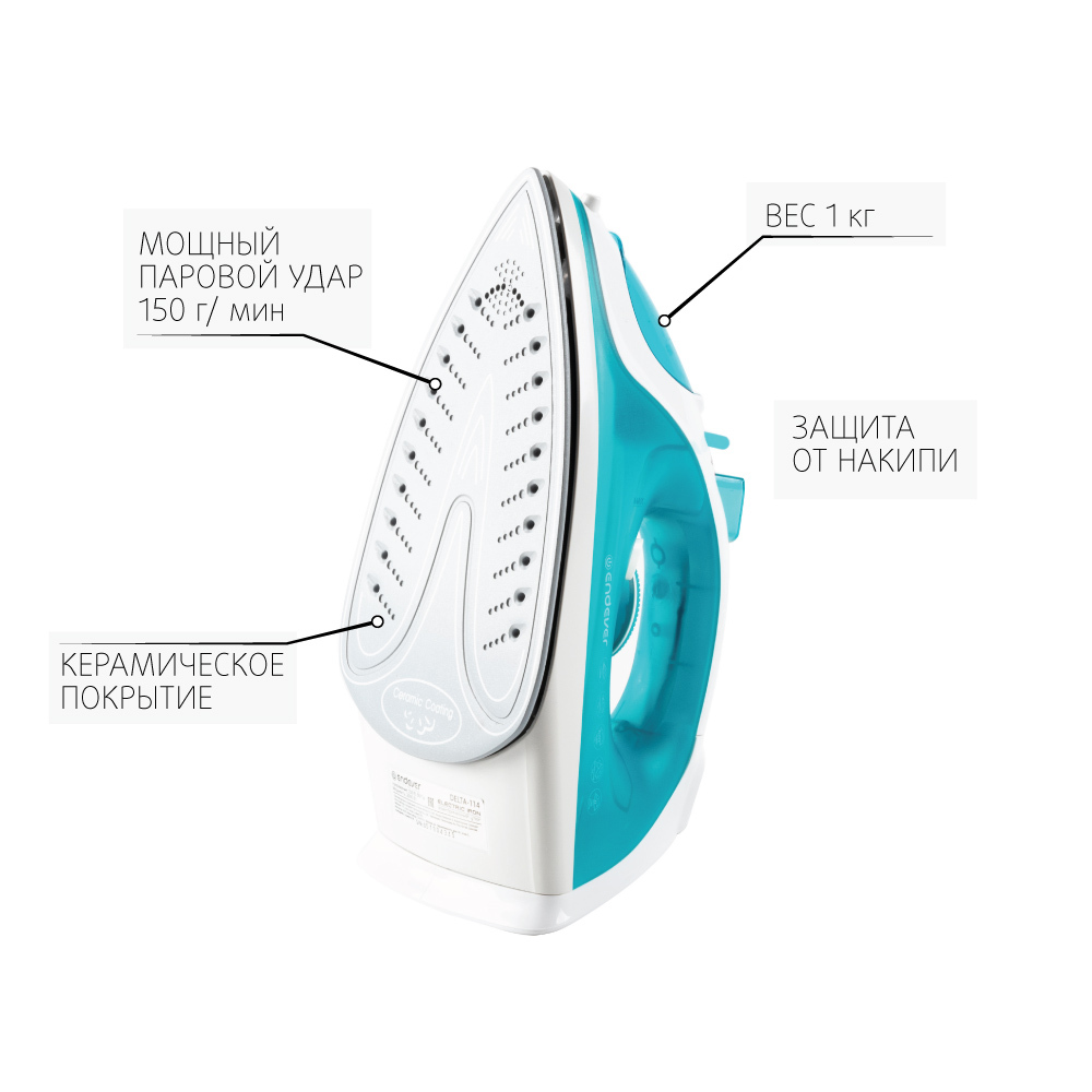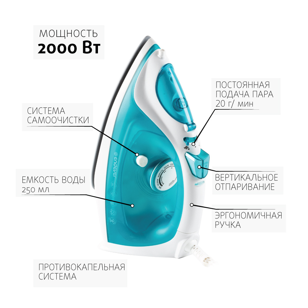Утюг Endever Delta-114, керамическая подошва, мощность 2000 Вт, белый/бирюзовый