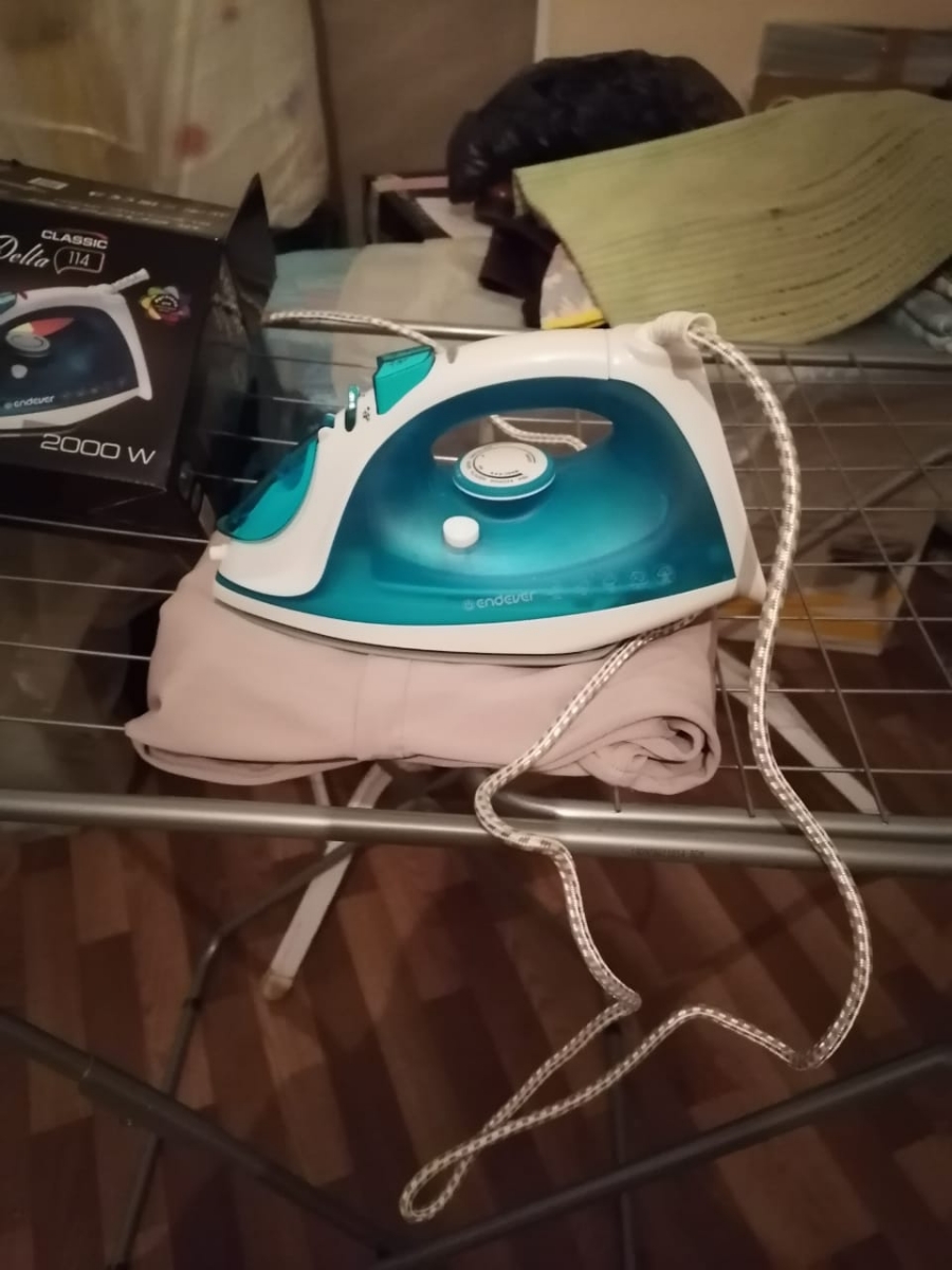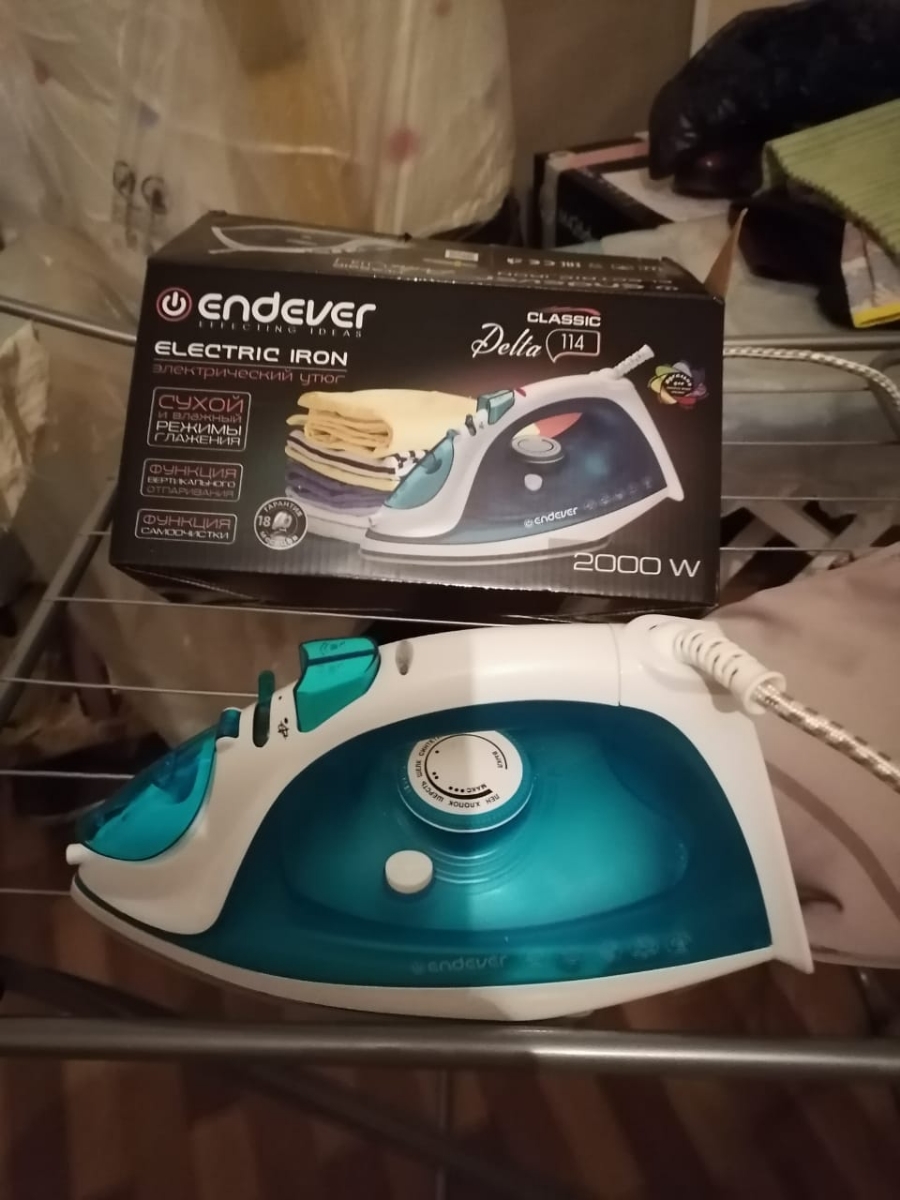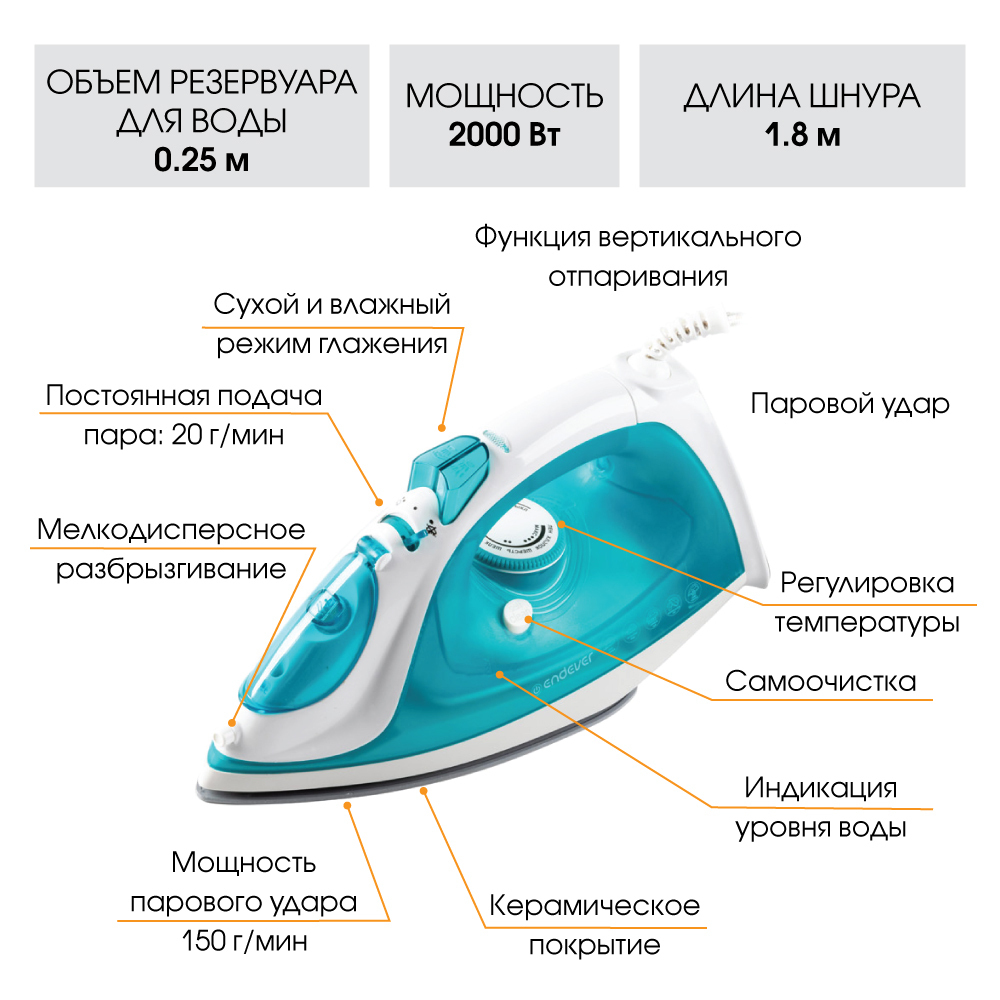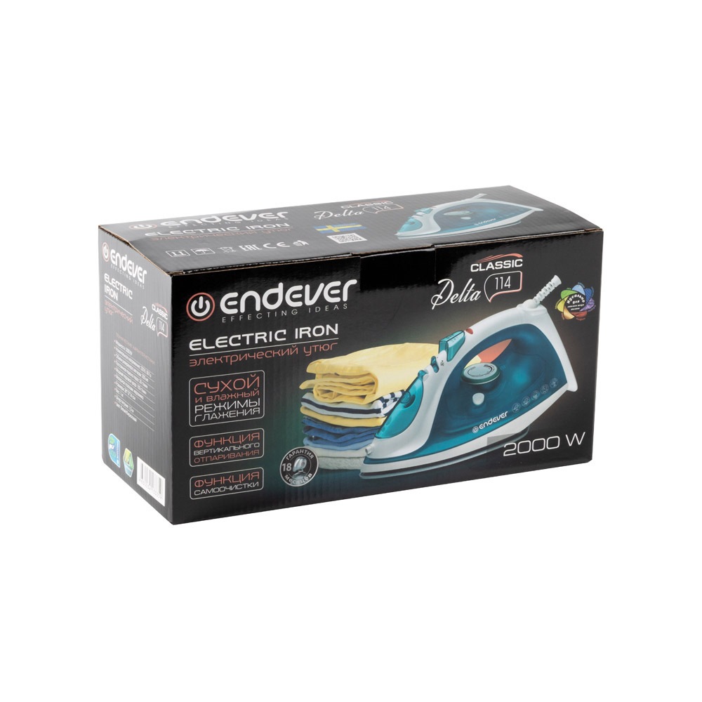 Утюг Endever Delta-114, керамическая подошва, мощность 2000 Вт, белый/бирюзовый