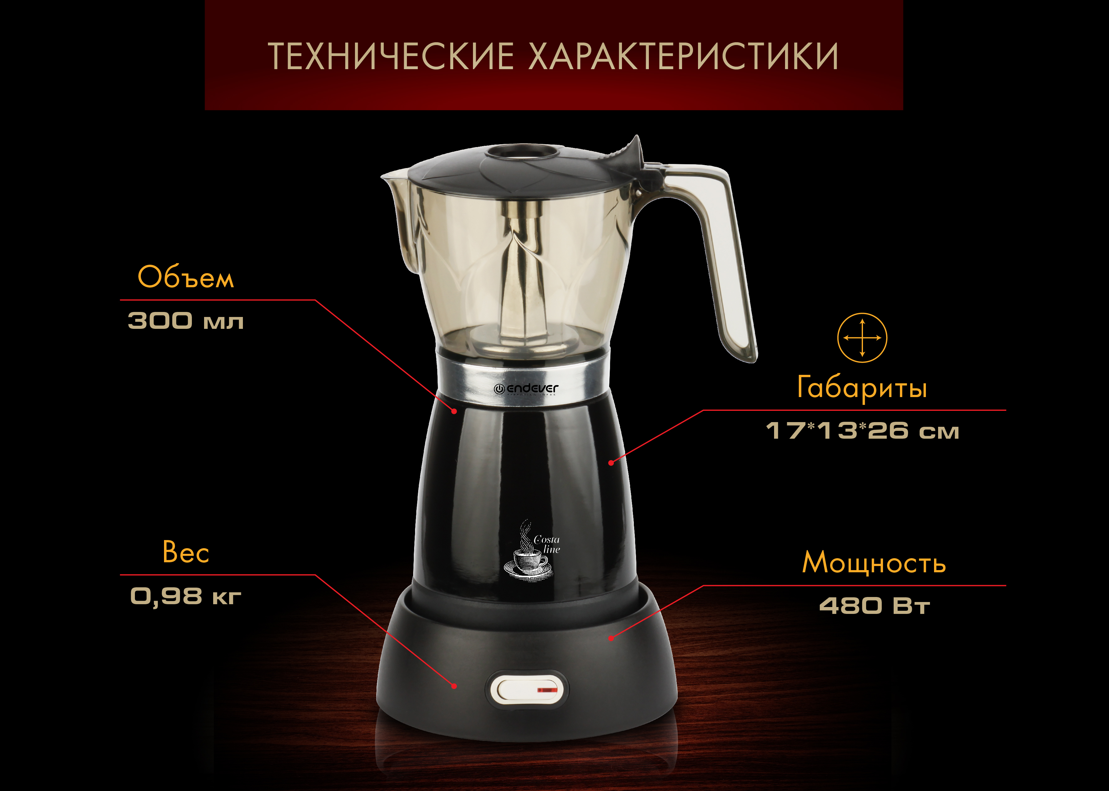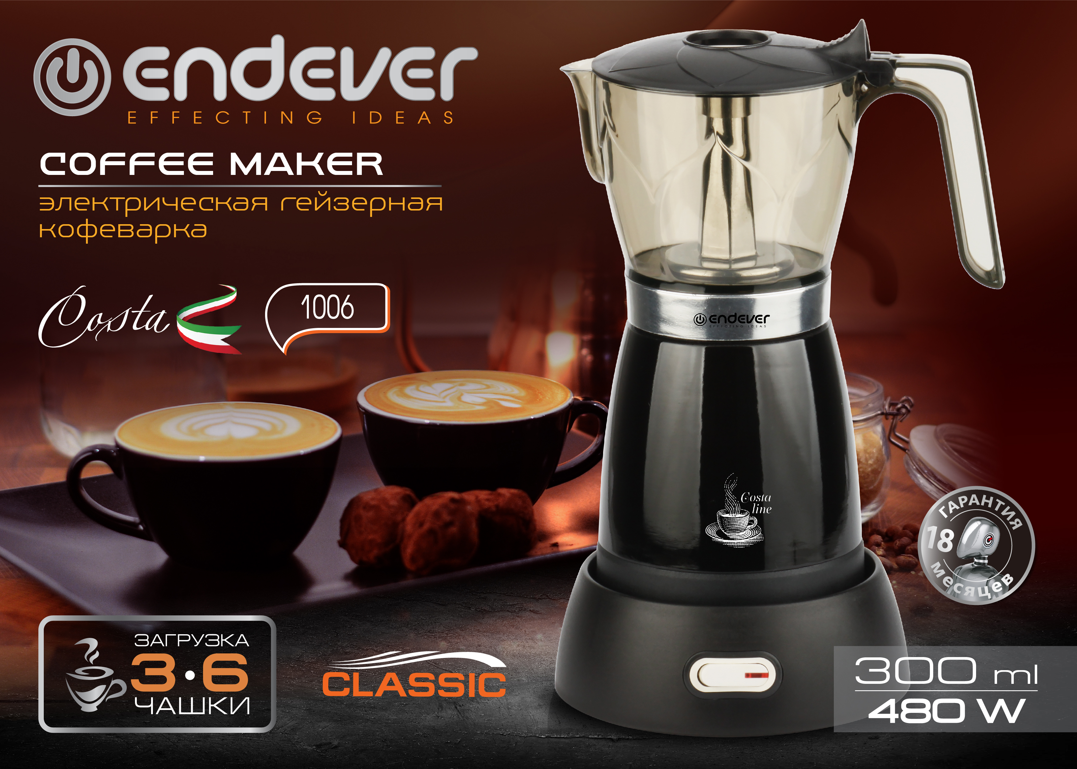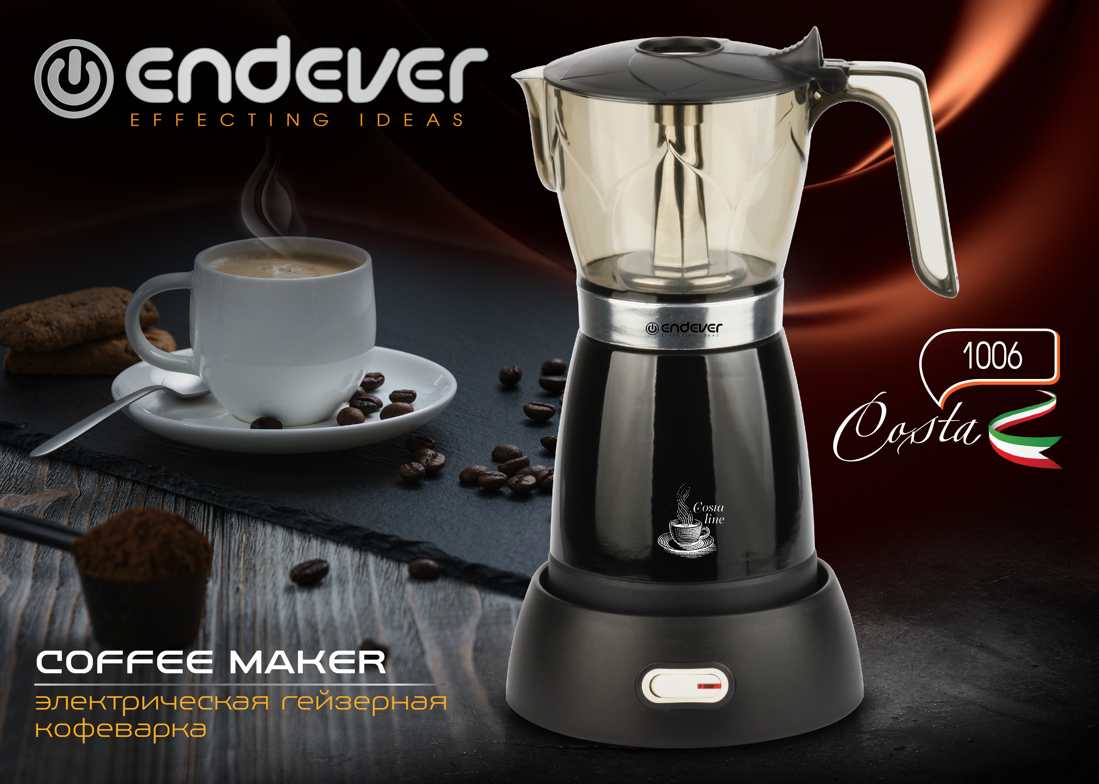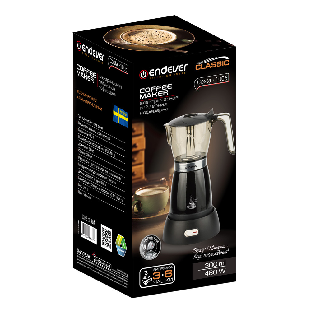 Кофеварка гейзерная электрическая Endever Costa-1006, черный