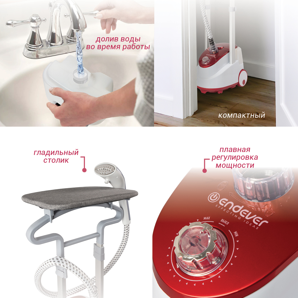 Универсальный отпариватель ENDEVER ODYSSEY Q-500, цвет красный/белый.