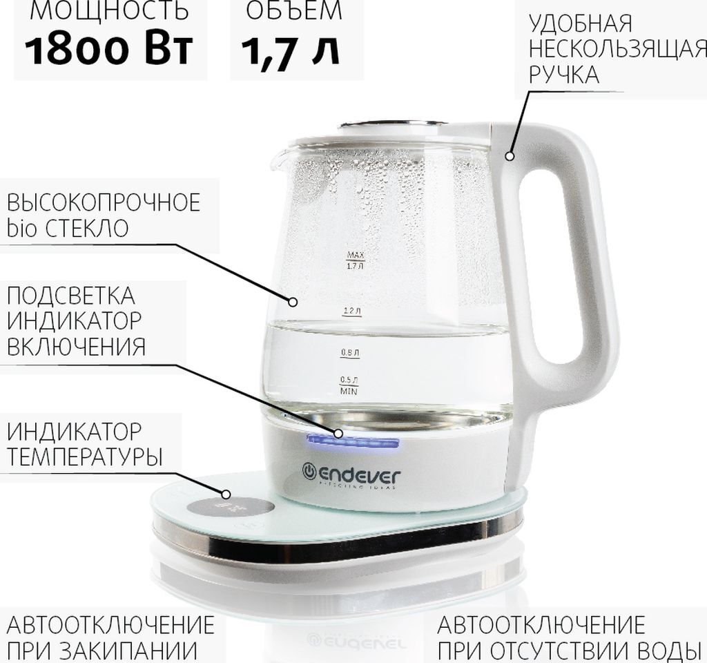 Электрический чайник Endever KR-335 G, серебристый. Уцененный товар