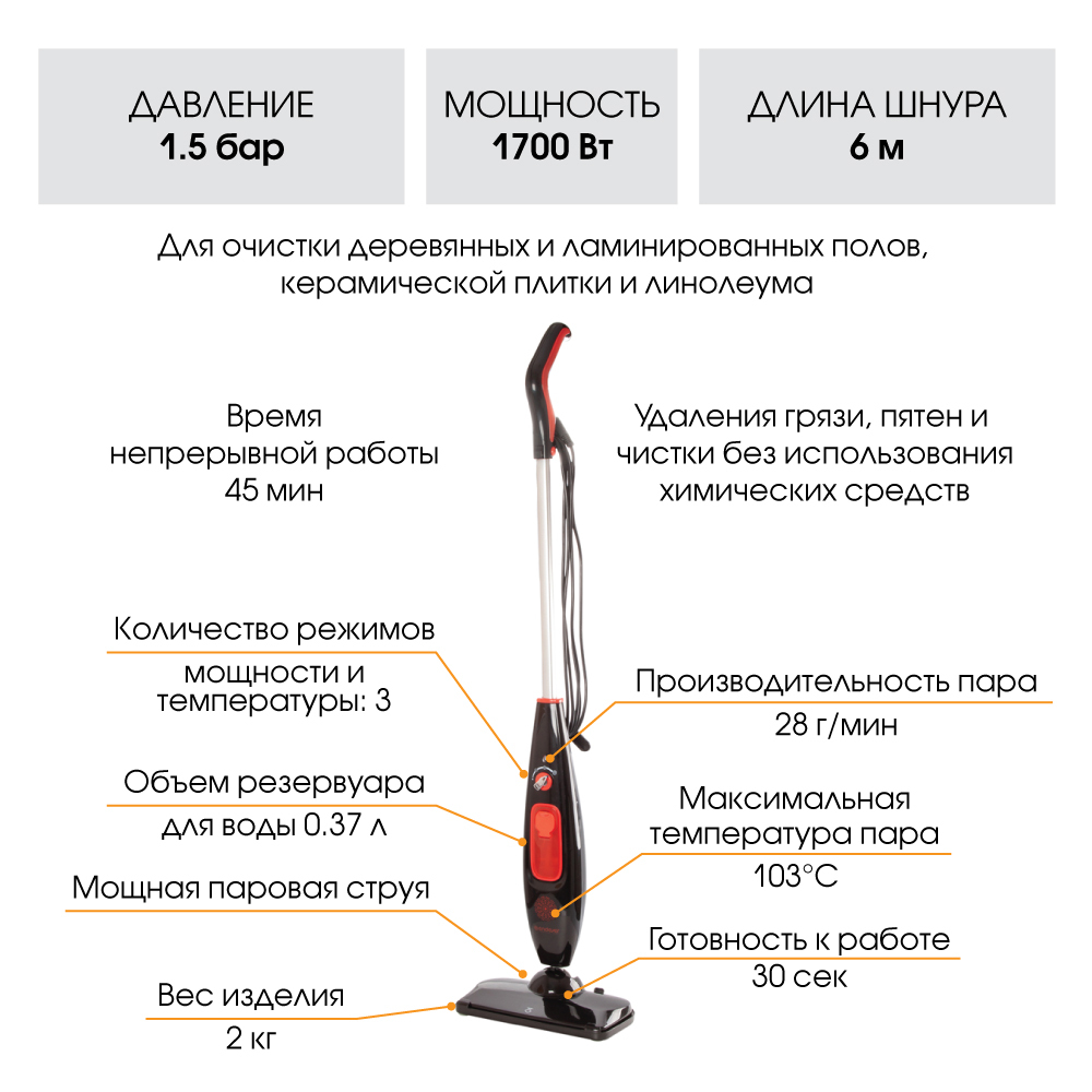 Паровая швабра Endever Q-607, черный, красный