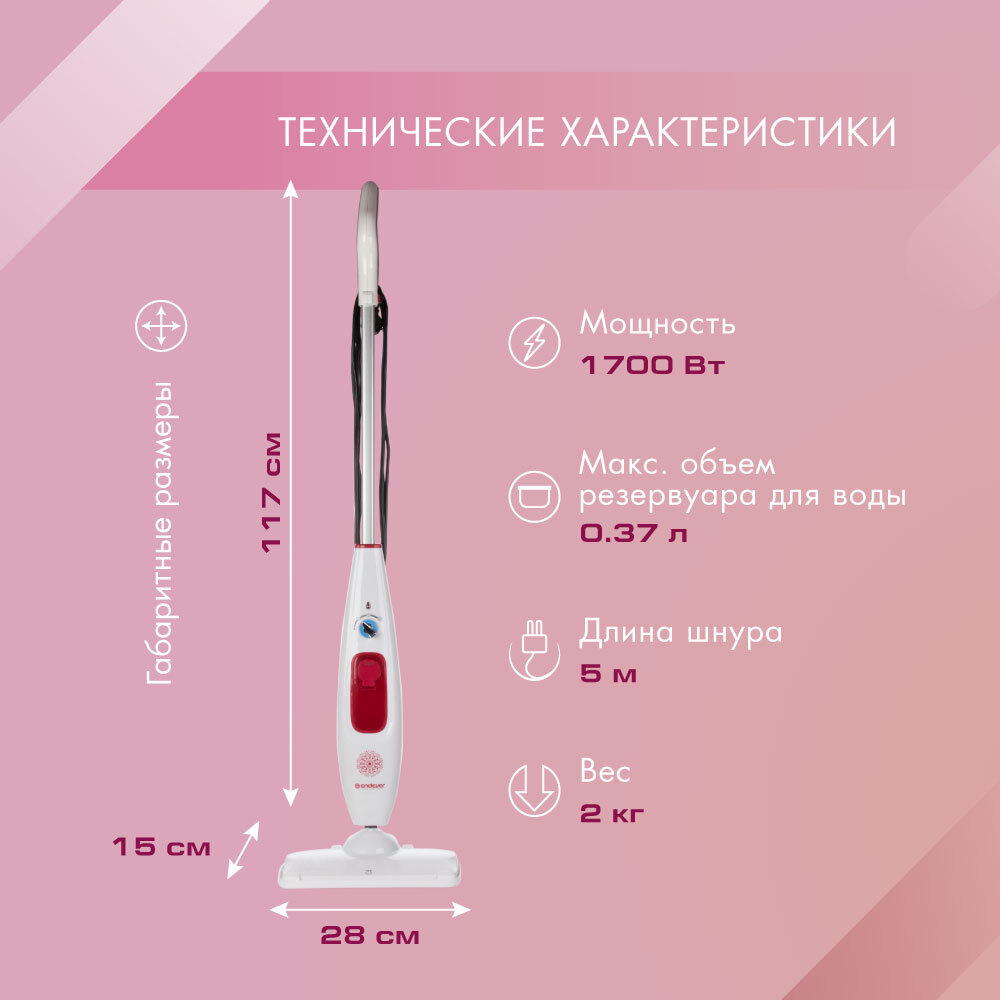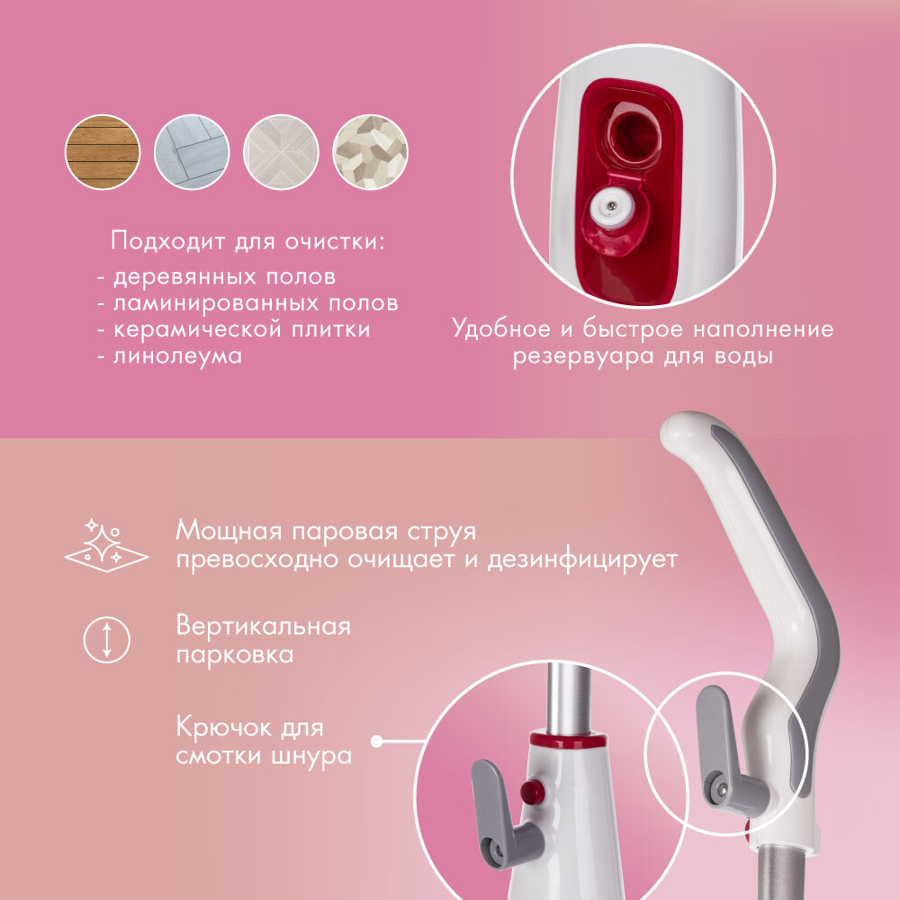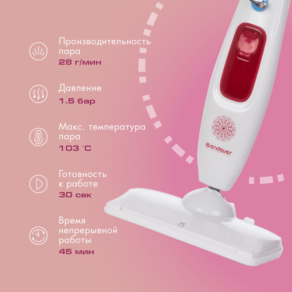 Паровая швабра Endever Odyssey Q-606, белый, малиновый, белый, малиновый