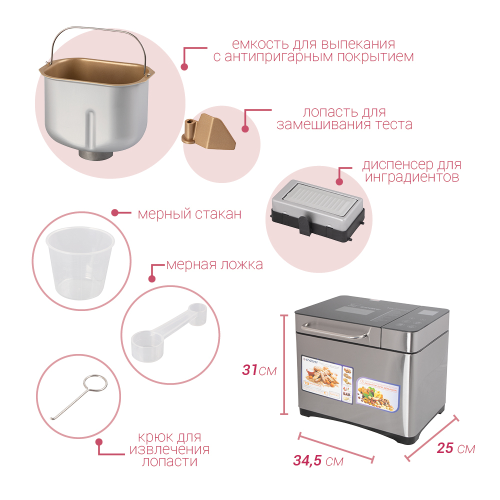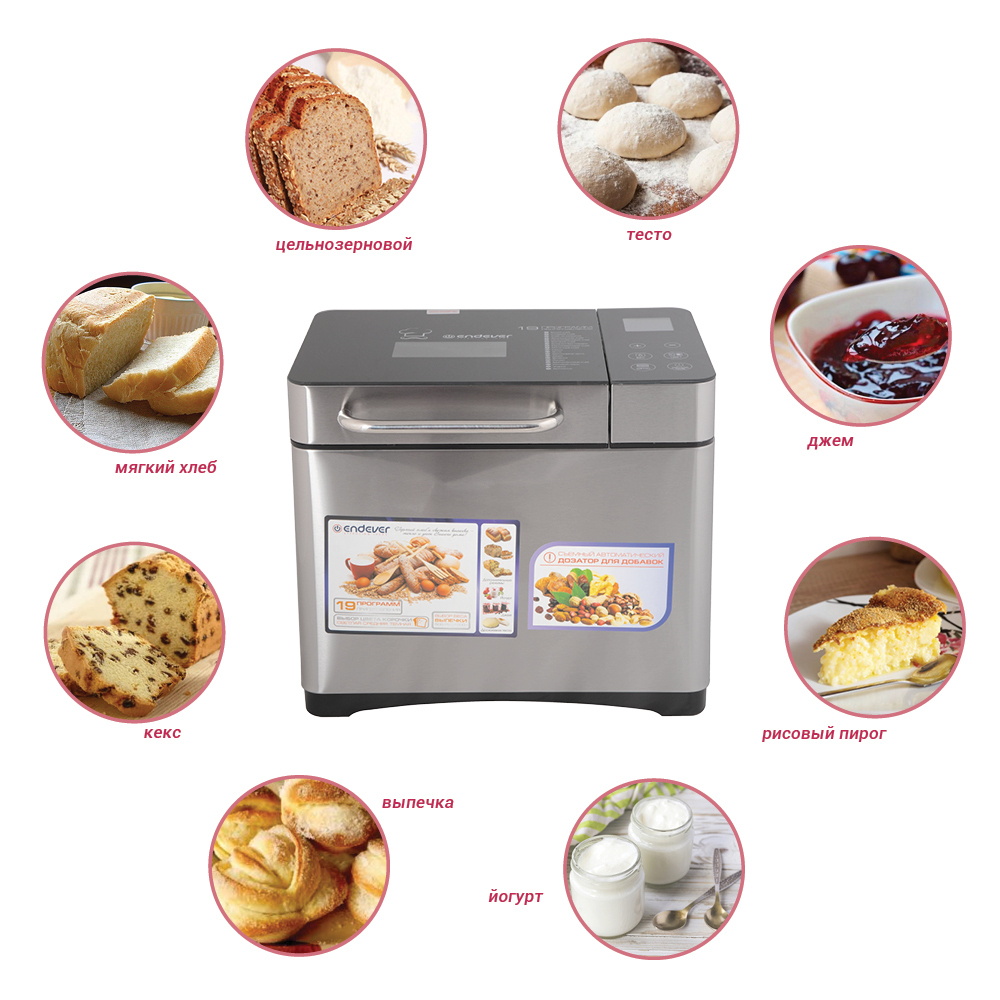 Хлебопечка Endever MB-53, 19 автоматических программ+съемный дозатор для ингредиентов, серебристый