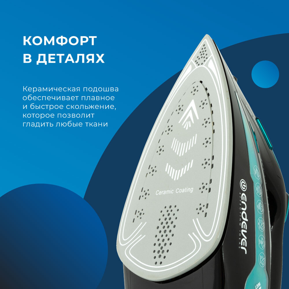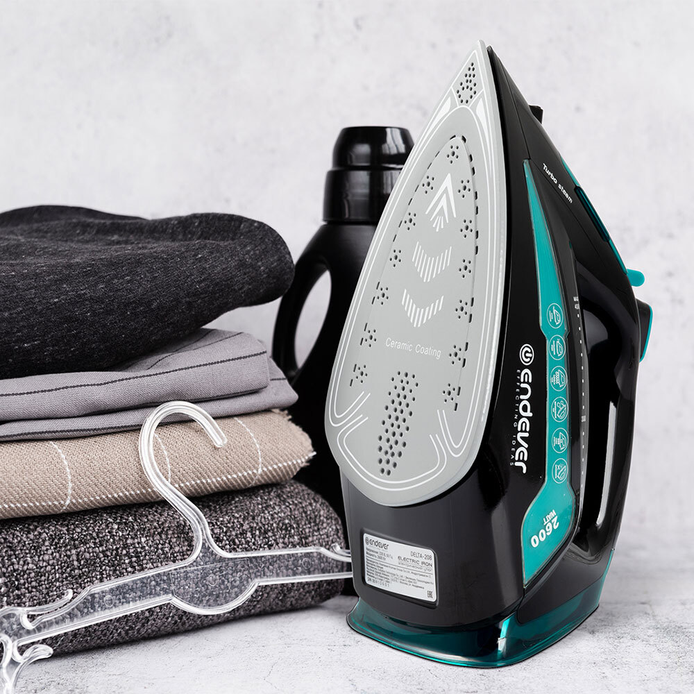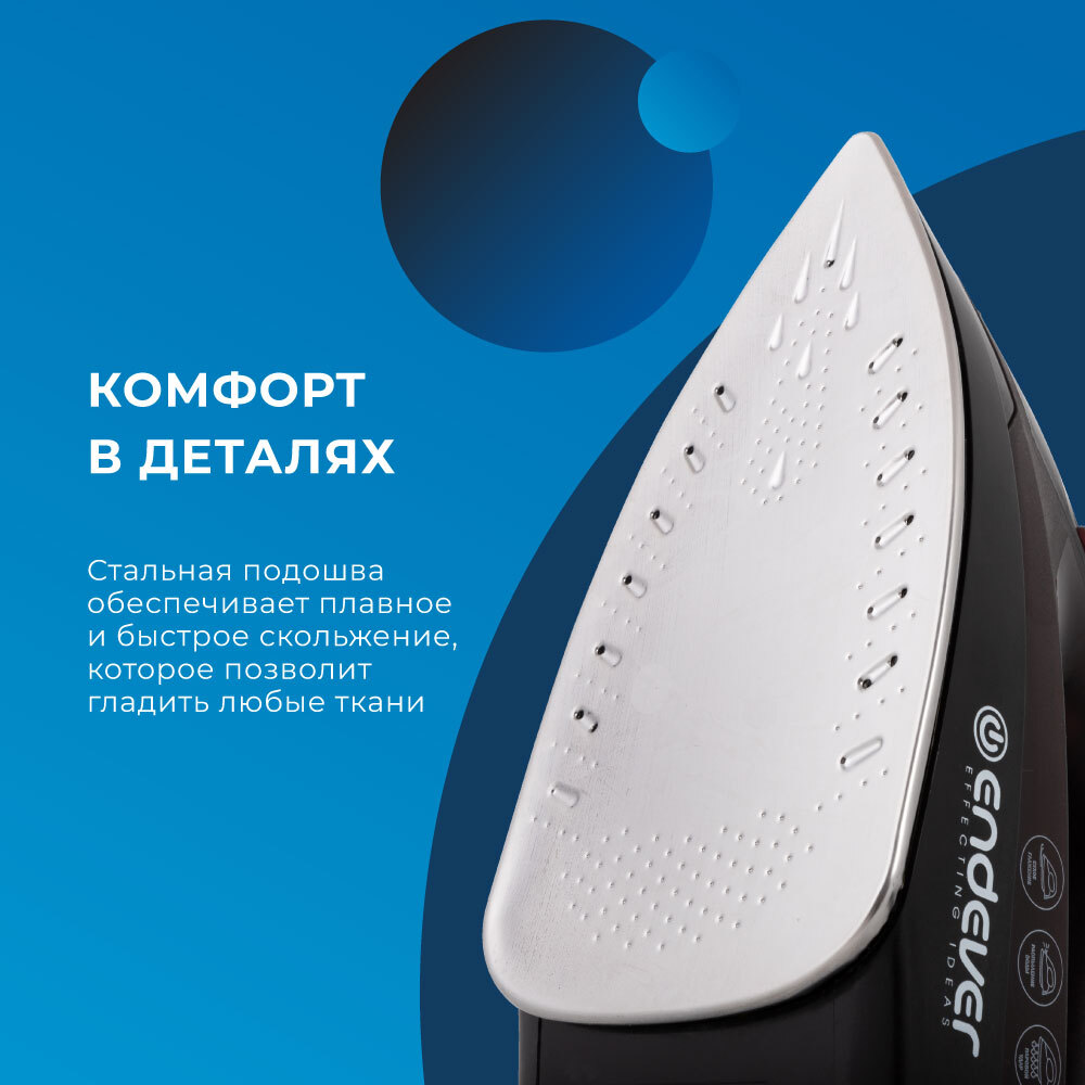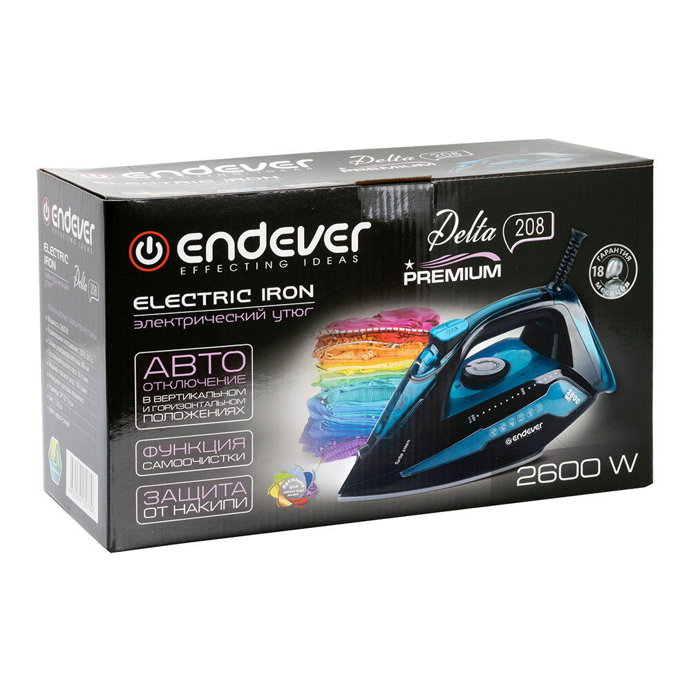 Утюг Endever Delta-208, мощность 2600 Вт, керамическая подошва, черный/синий