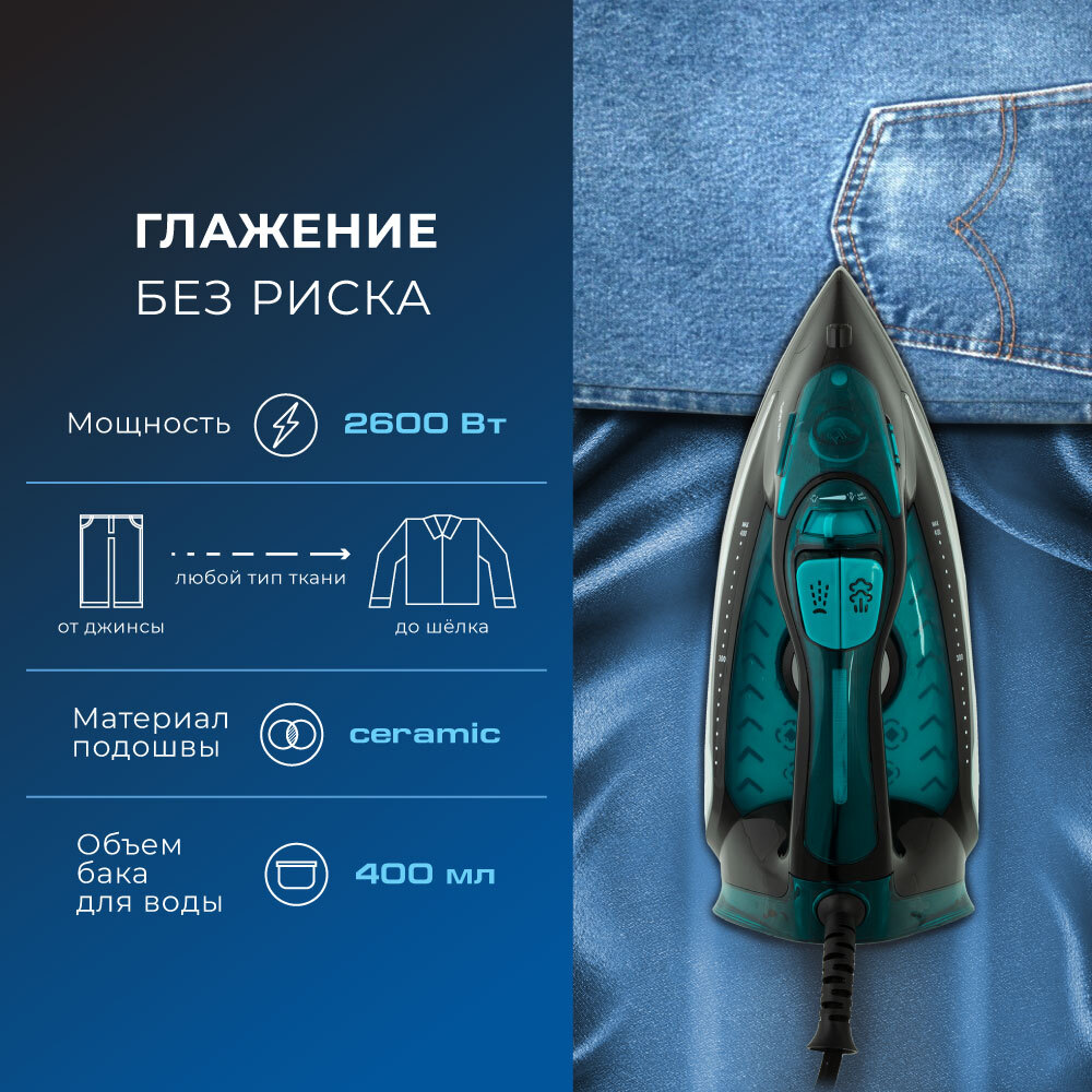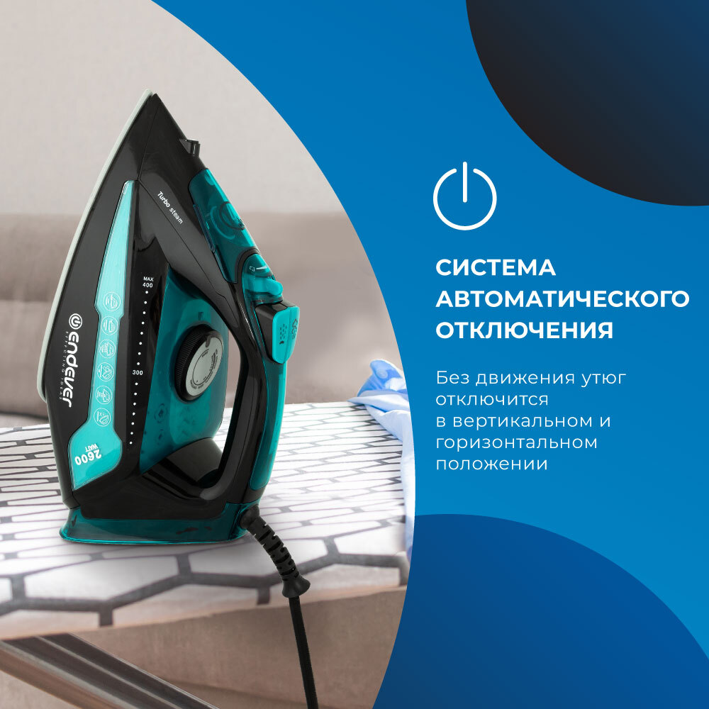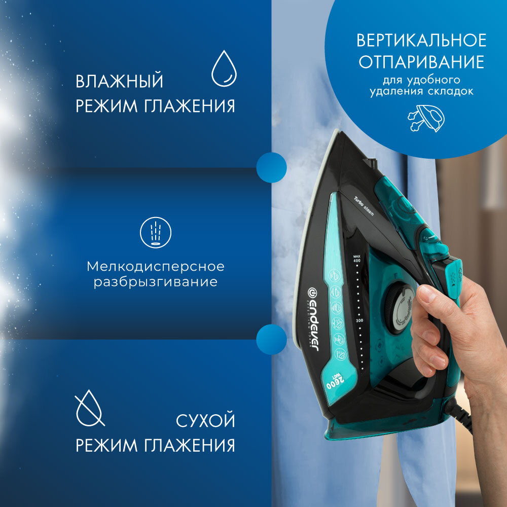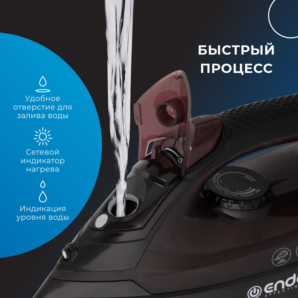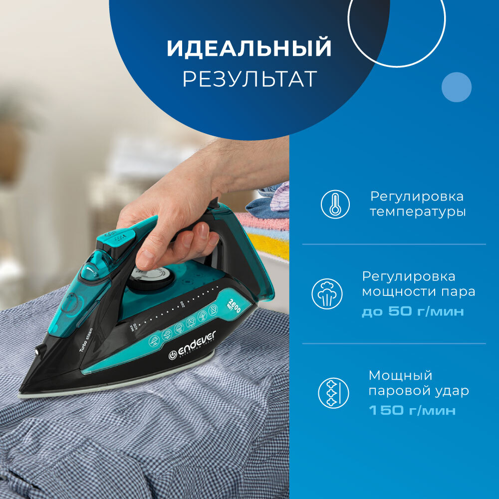 Утюг Endever Delta-208, мощность 2600 Вт, керамическая подошва, черный/синий