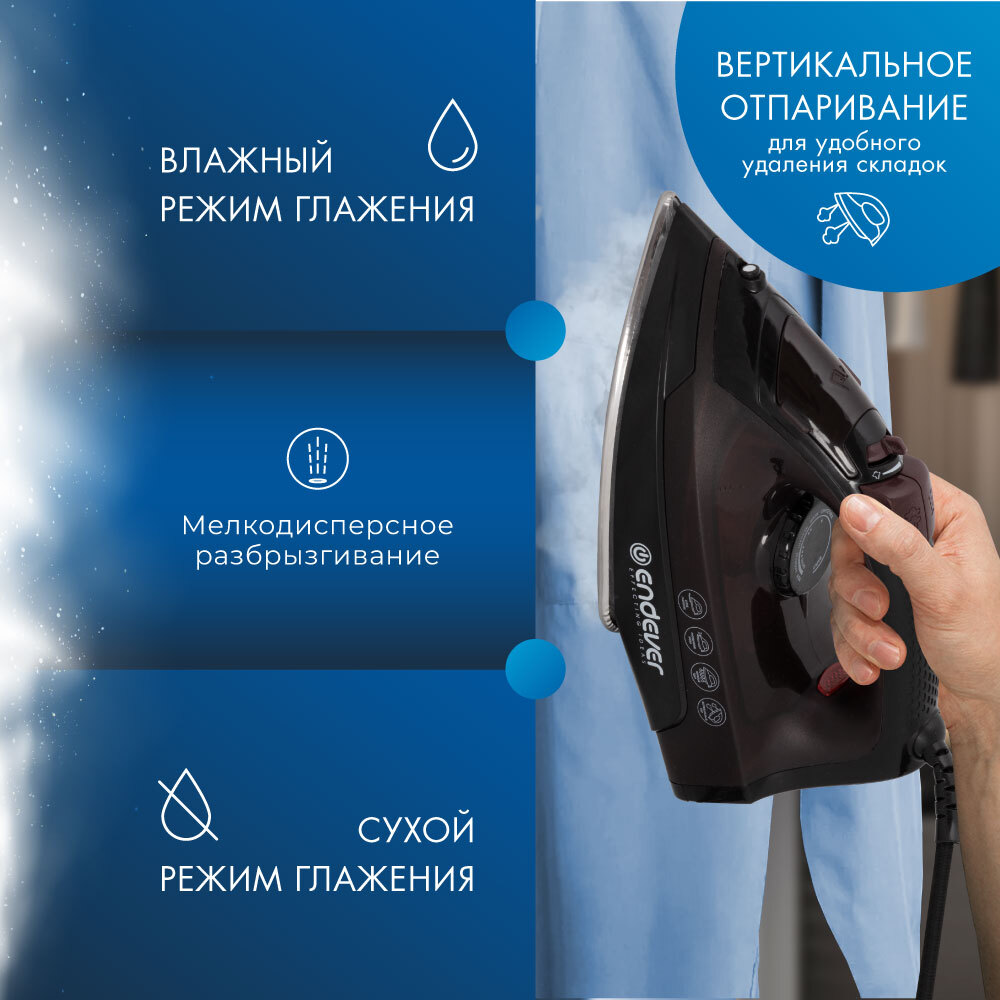 Утюг Endever Delta-103, стальная подошва, с функцией вертикального отпаривания