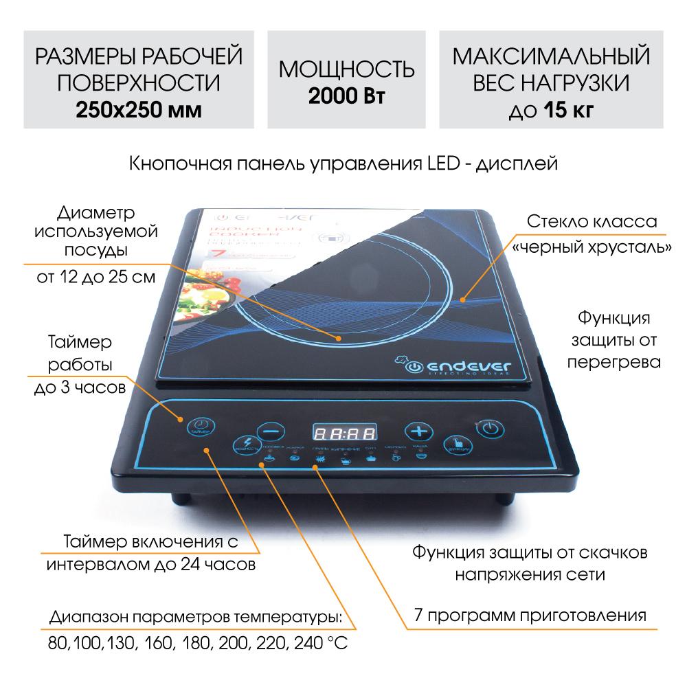 Индукционная Настольная плита Endever IP-26, 7 программ приготовления, черный