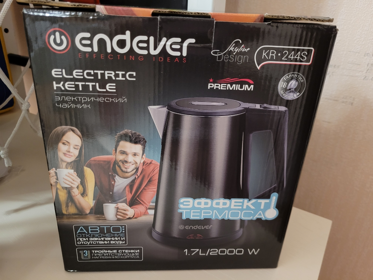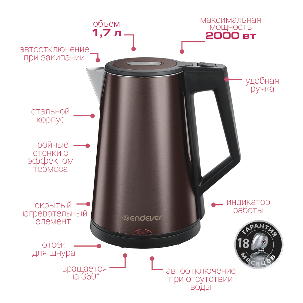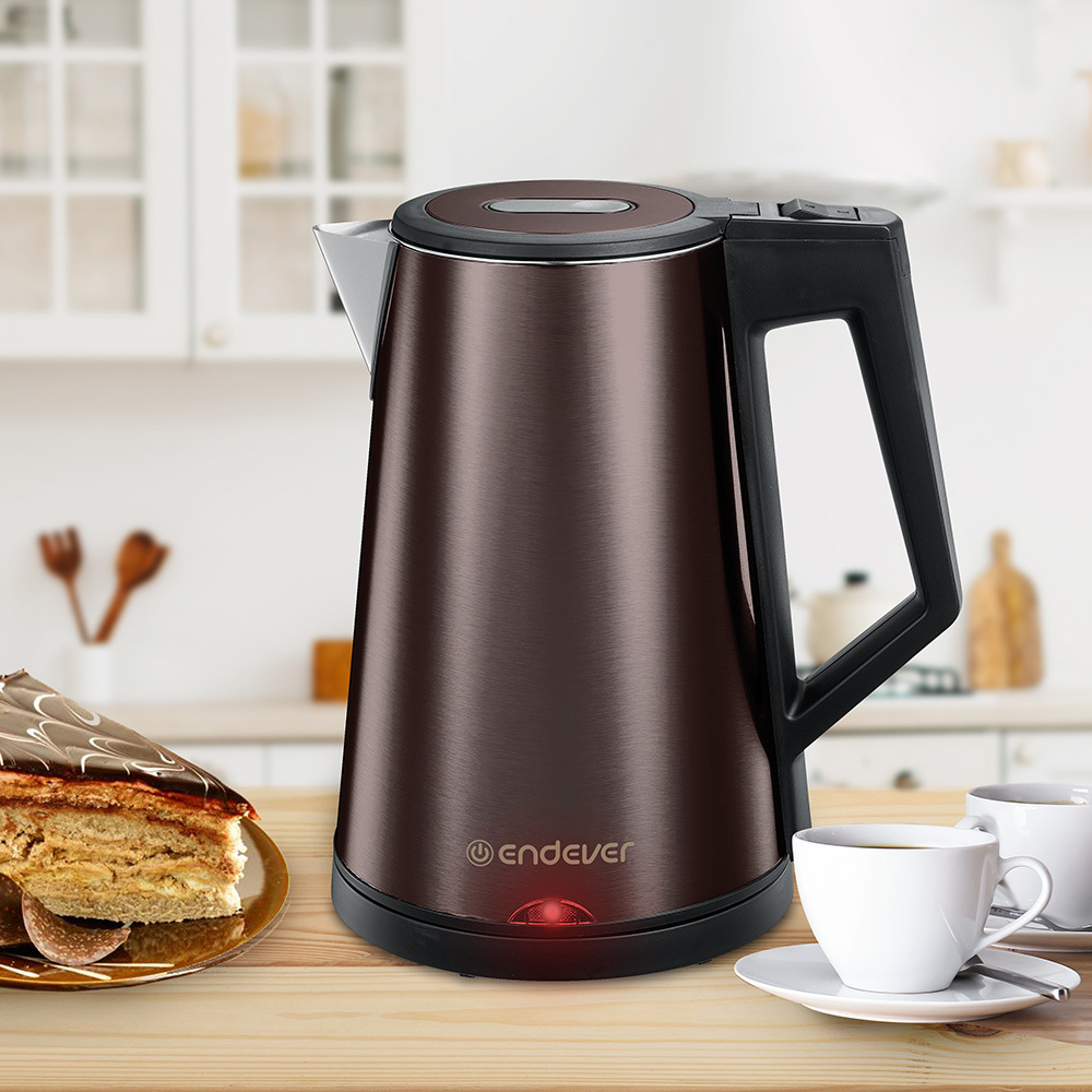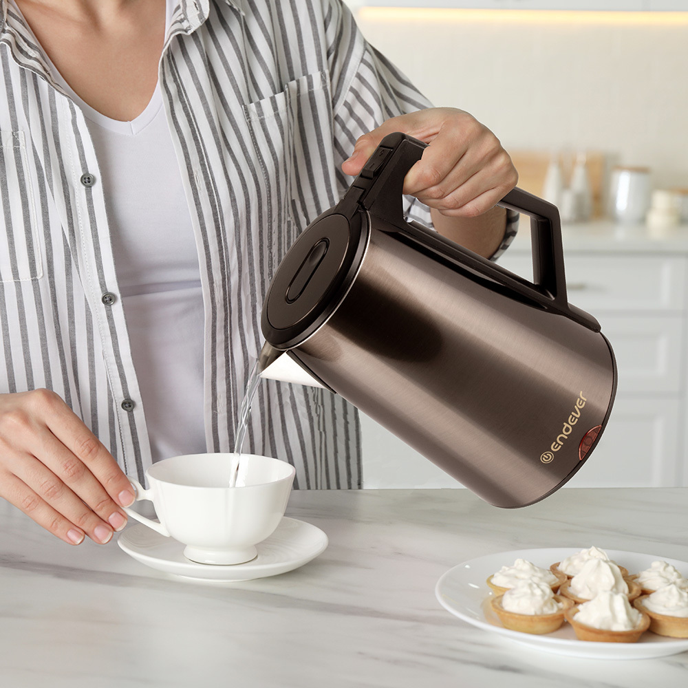 Электрический чайник Endever KR-243S с эффектом термоса, тройными ненагревающимися стенками, бронза