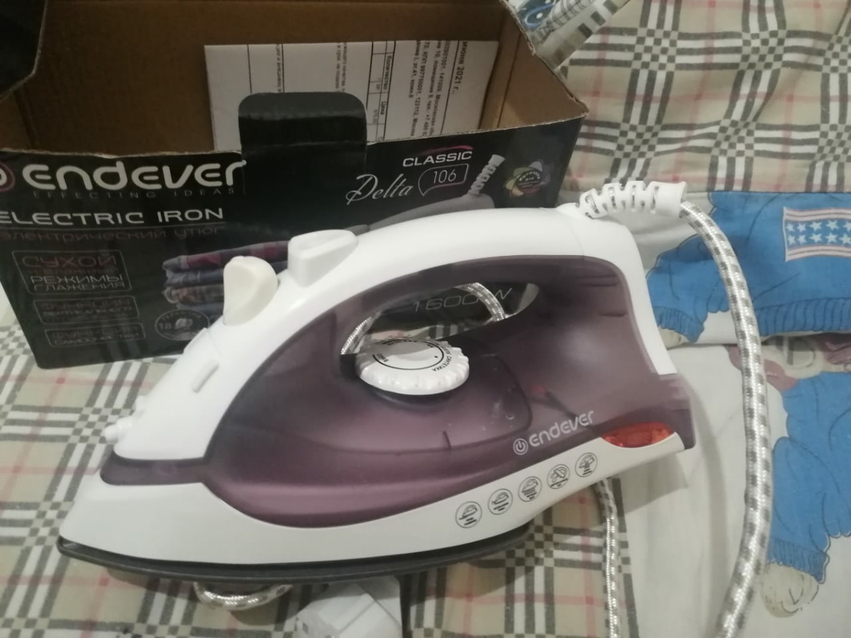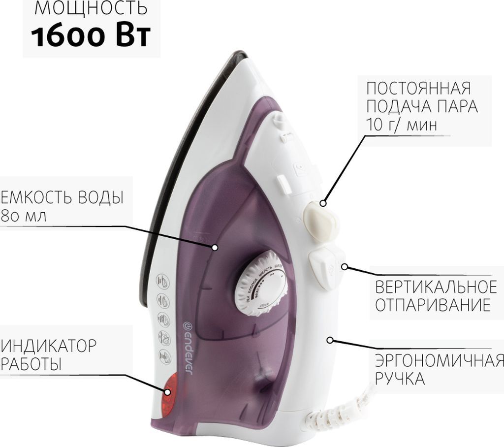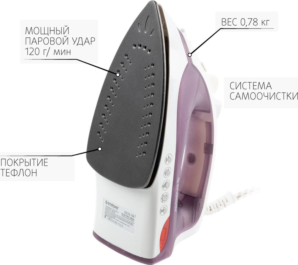 Утюг Endever Delta-106, тефлоновая подошва, вертикальное отпаривание, белый/марсала