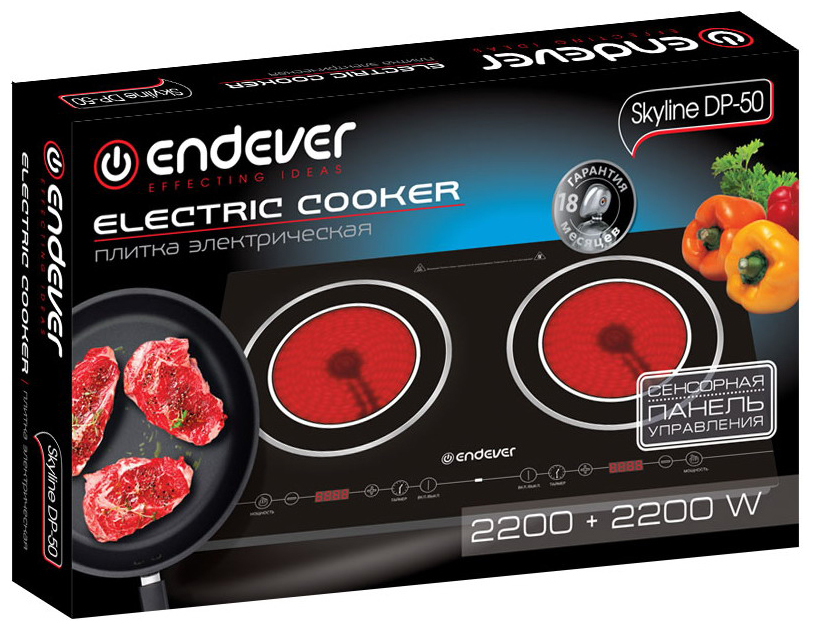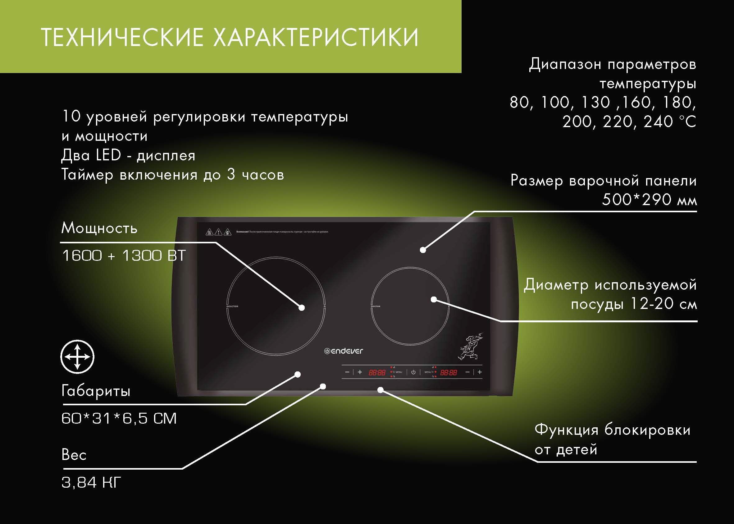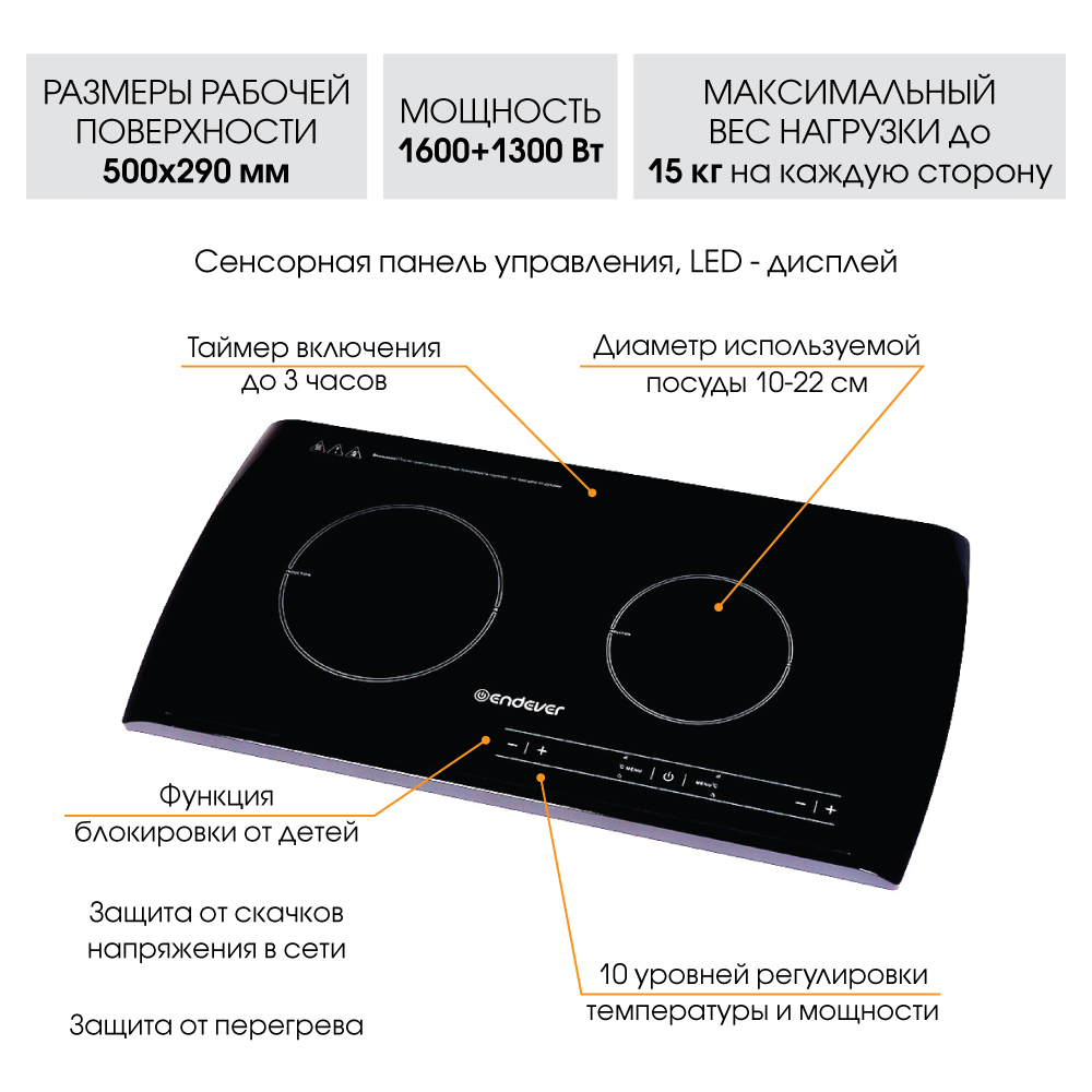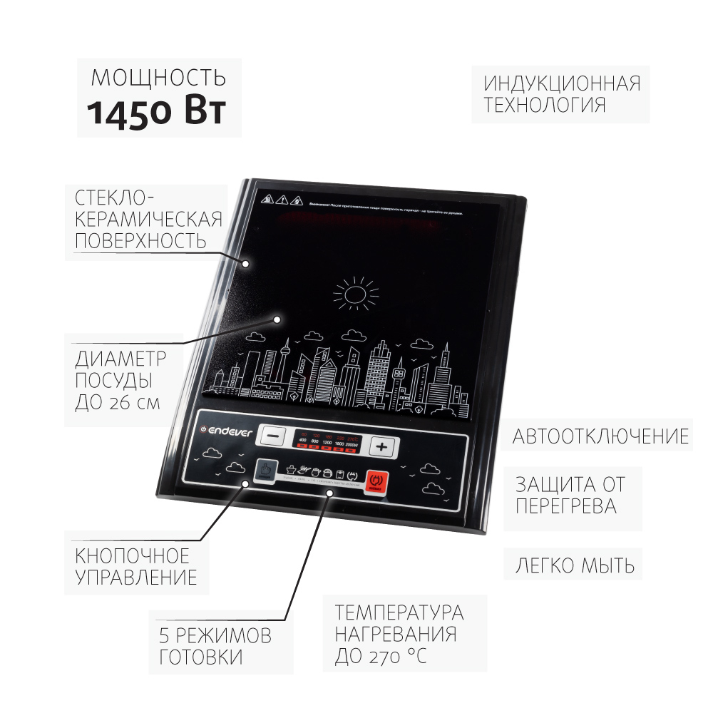Индукционная Настольная плита Endever IP-54, 10 уровней регулировки температуры и мощности, черный