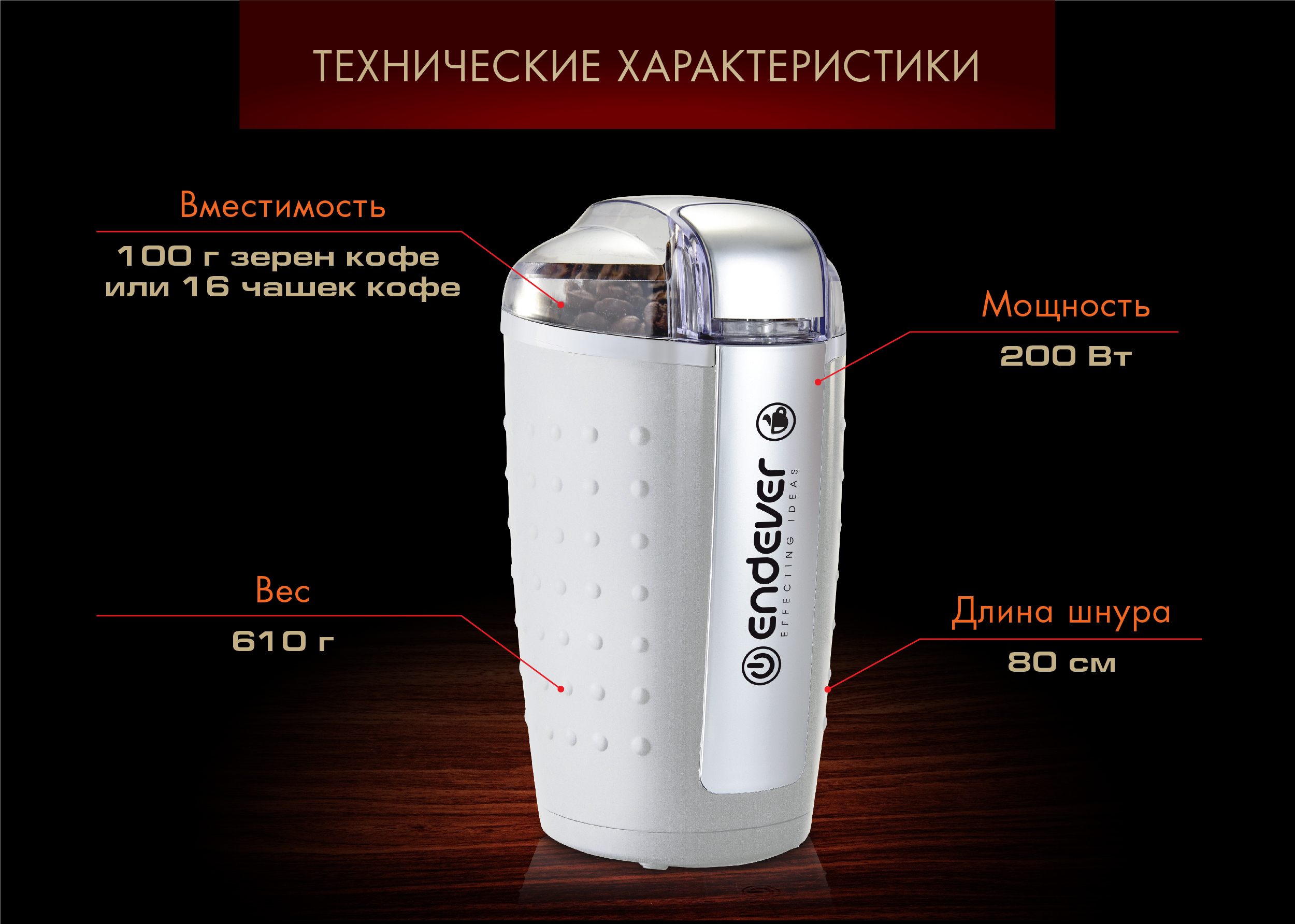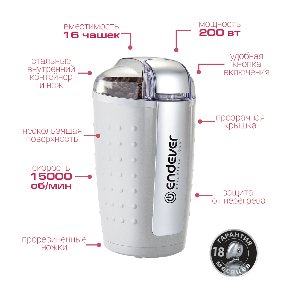 Кофемолка Endever Costa-1059, белый, серебристый, белый, серебристый