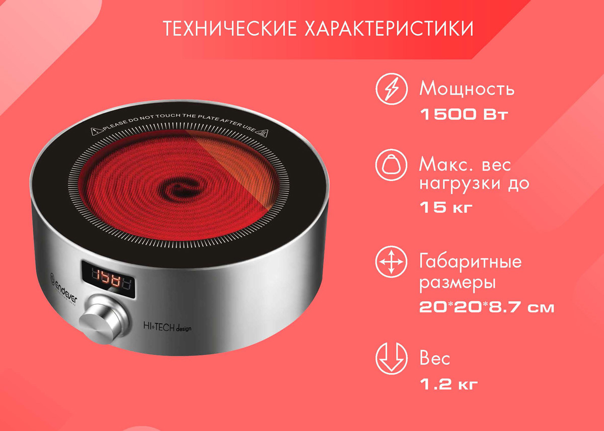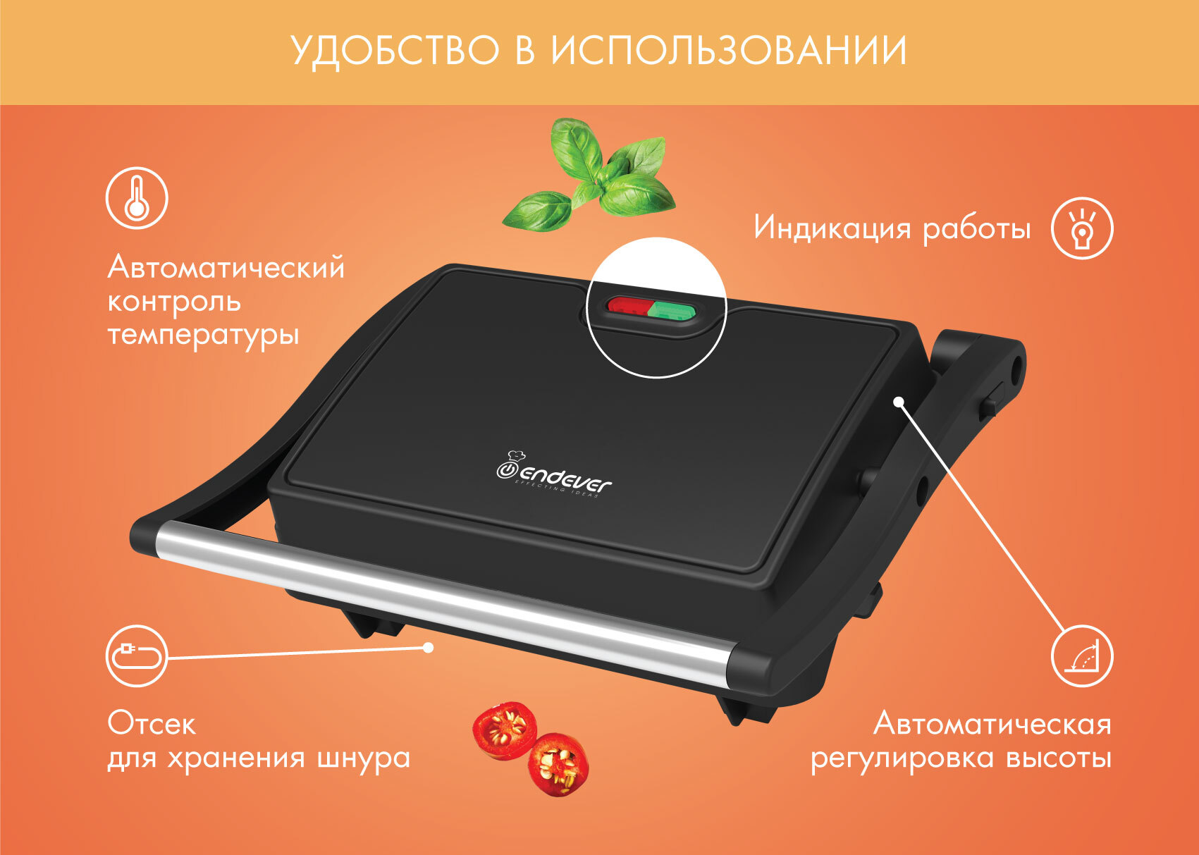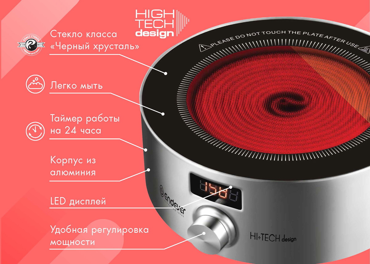Электрическая Настольная плита Endever IP-44, 8 уровней регулировки температуры и мощности, черный