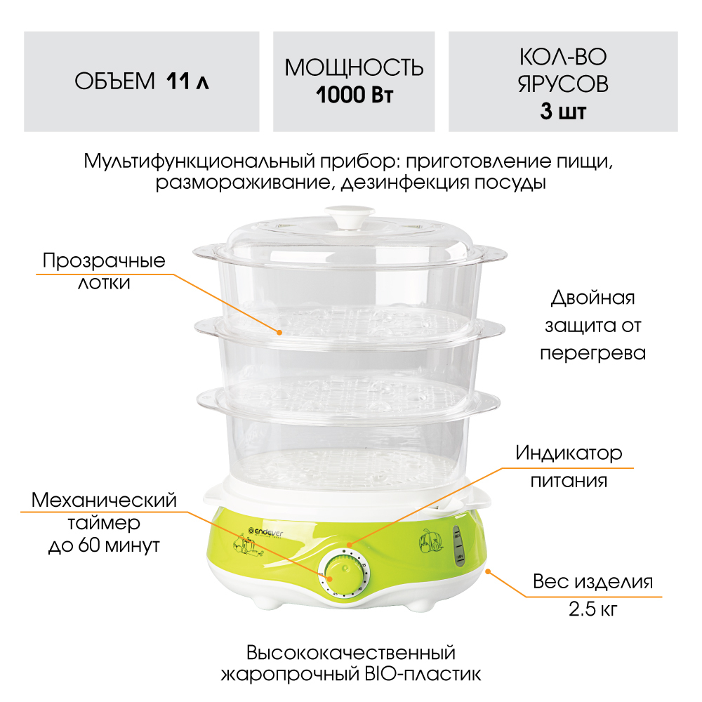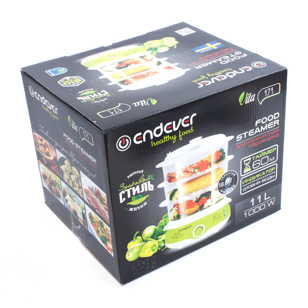 Пароварка электрическая Endever Vita-171, 11 литров, зеленый, белый