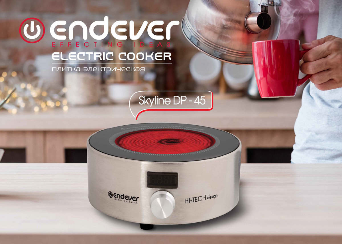 Электрическая Настольная плита Endever Электрическая DP-45B, серебристый