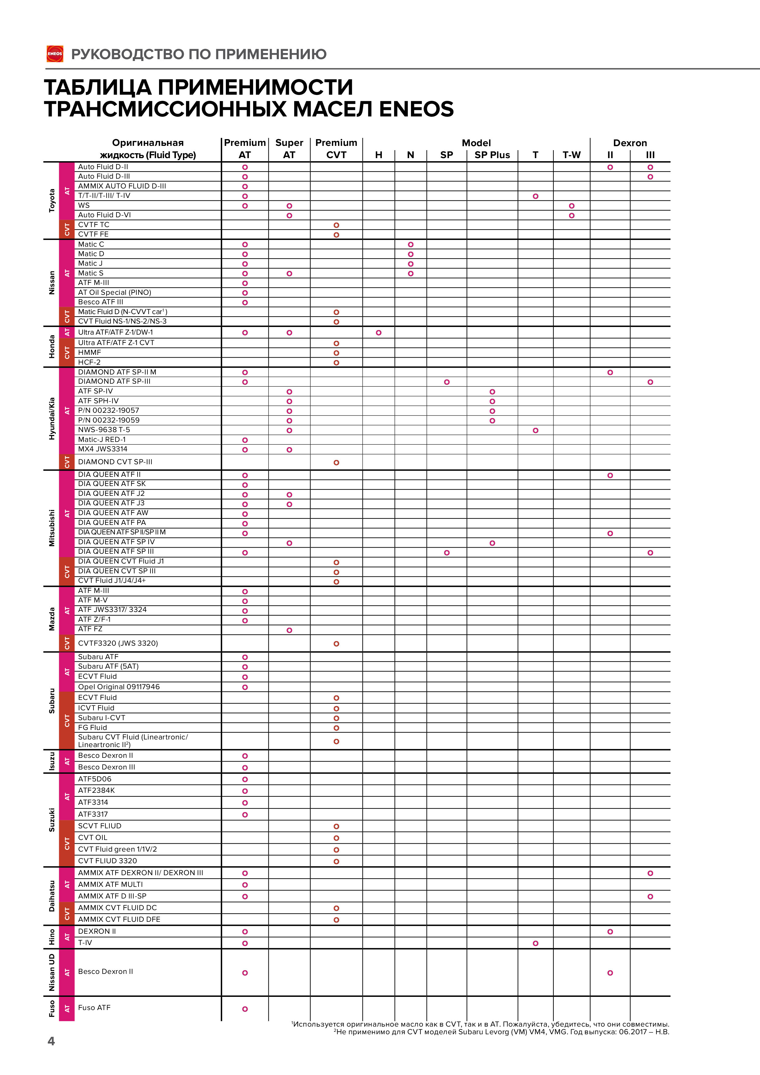 Масло трансмиссионное для АКПП Eneos Premium AT Fluid, 4л
