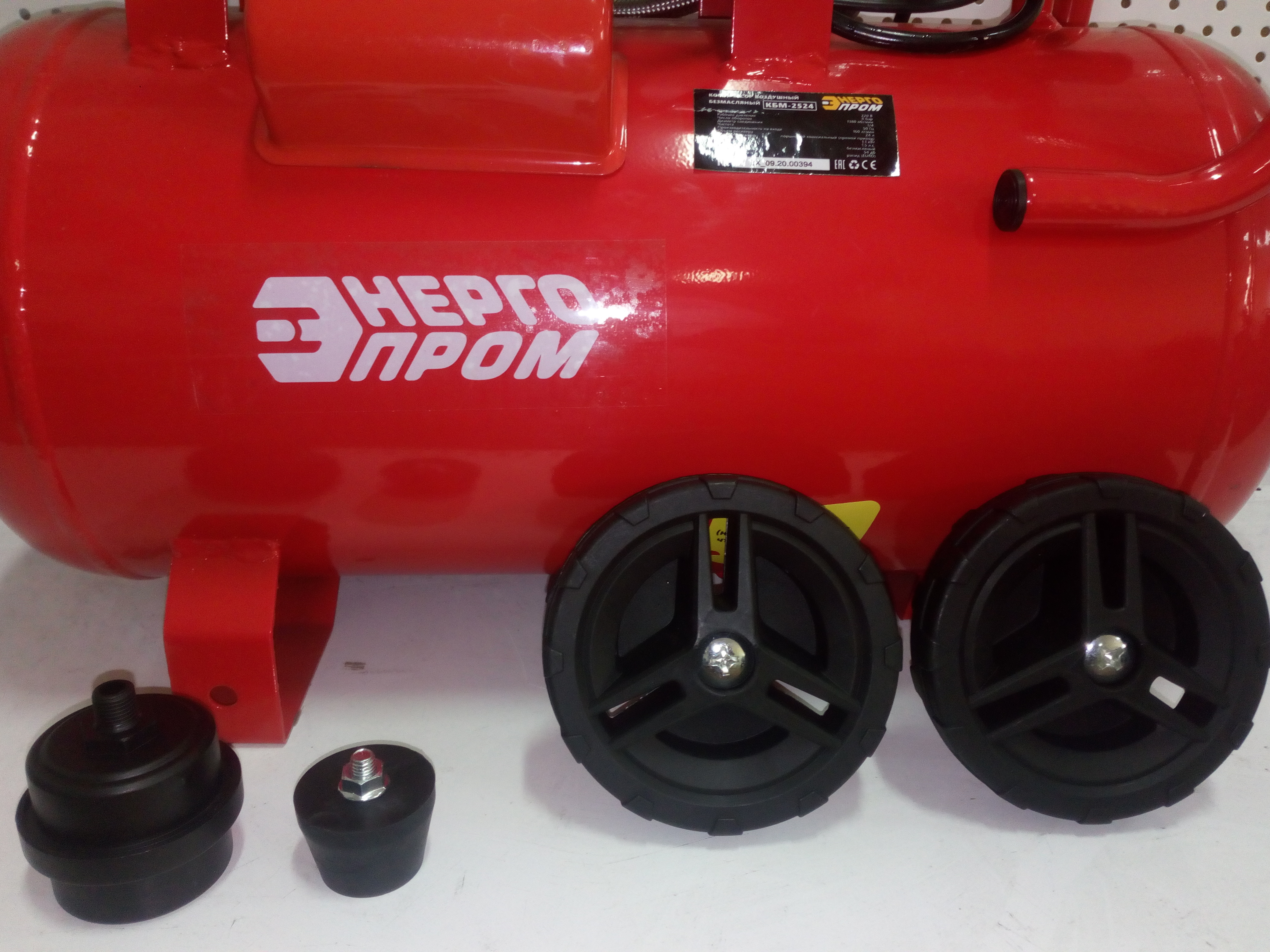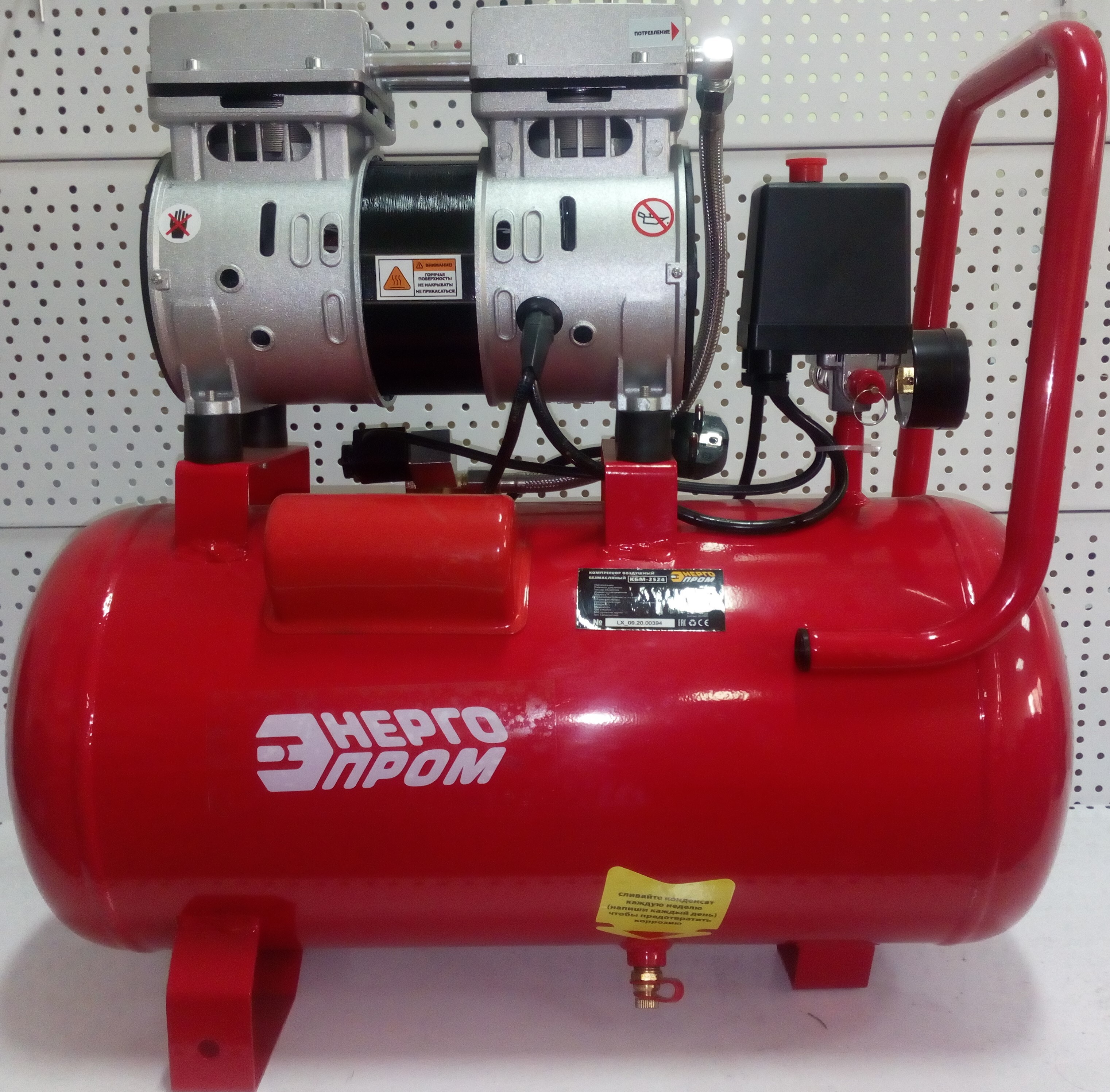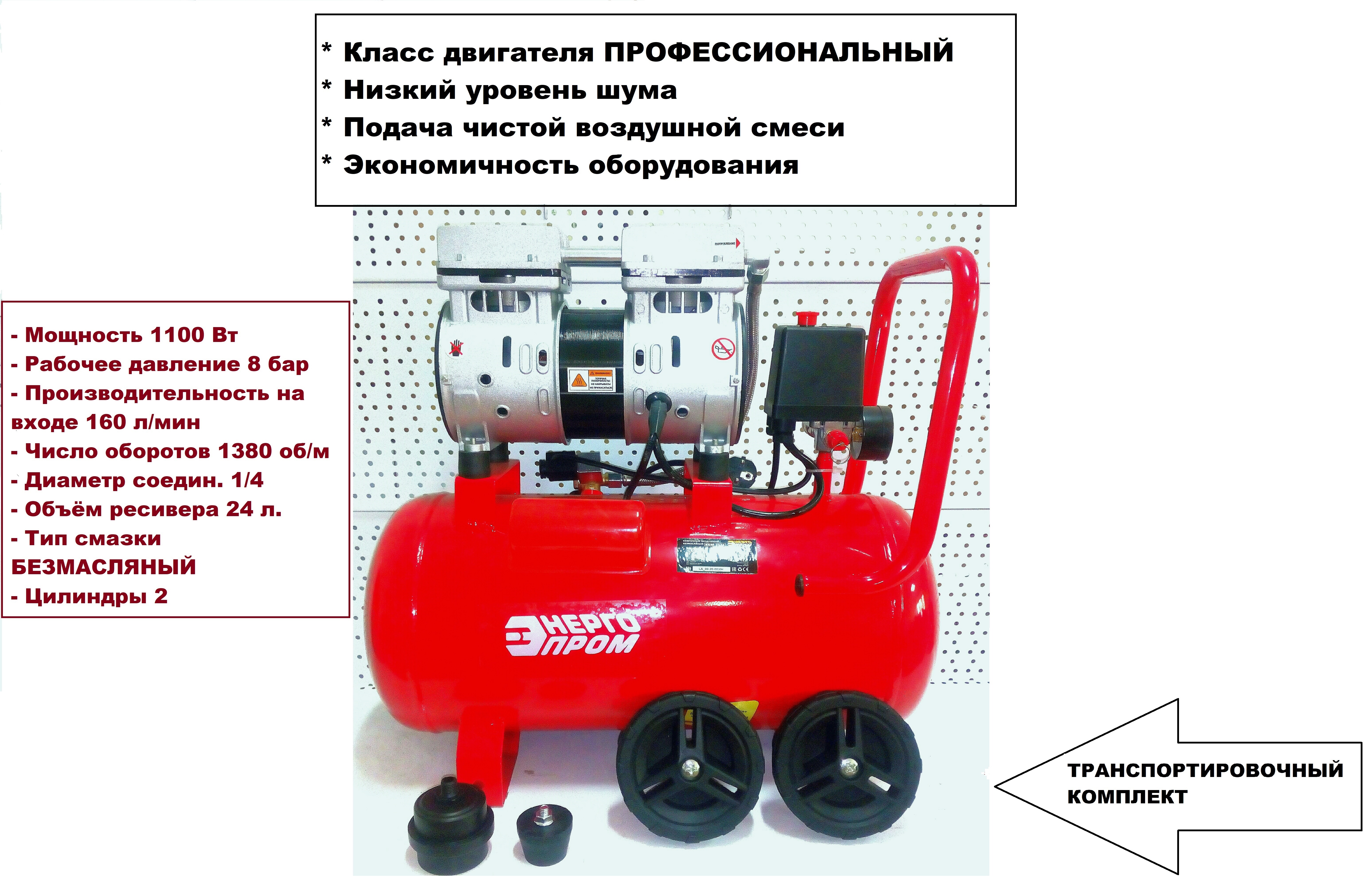 Компрессор БЕЗМАСЛЯНЫЙ двухпоршневой ЭНЕРГОПРОМ КБМ-2524 8 бар, 24 л, 160 л/ мин, 1100 Вт на колёсах
