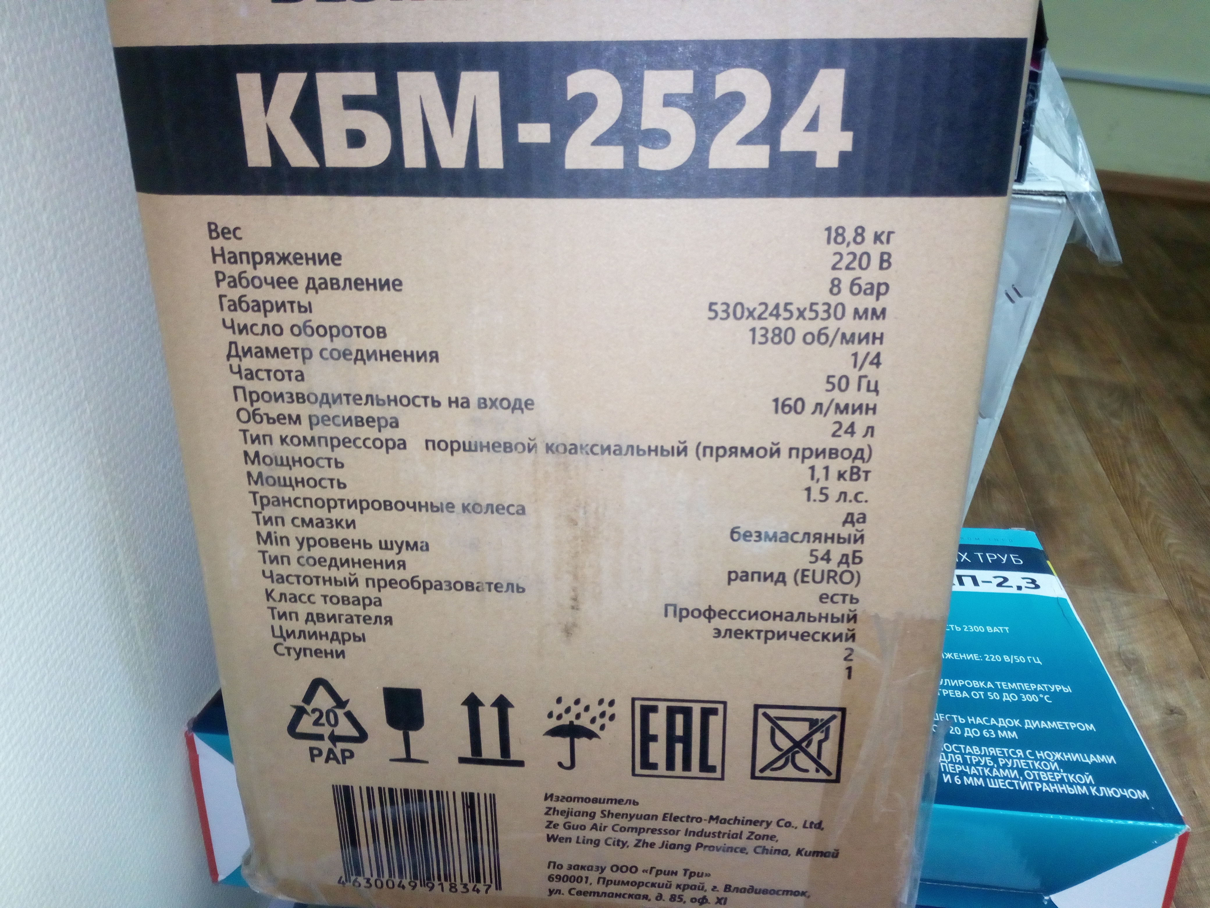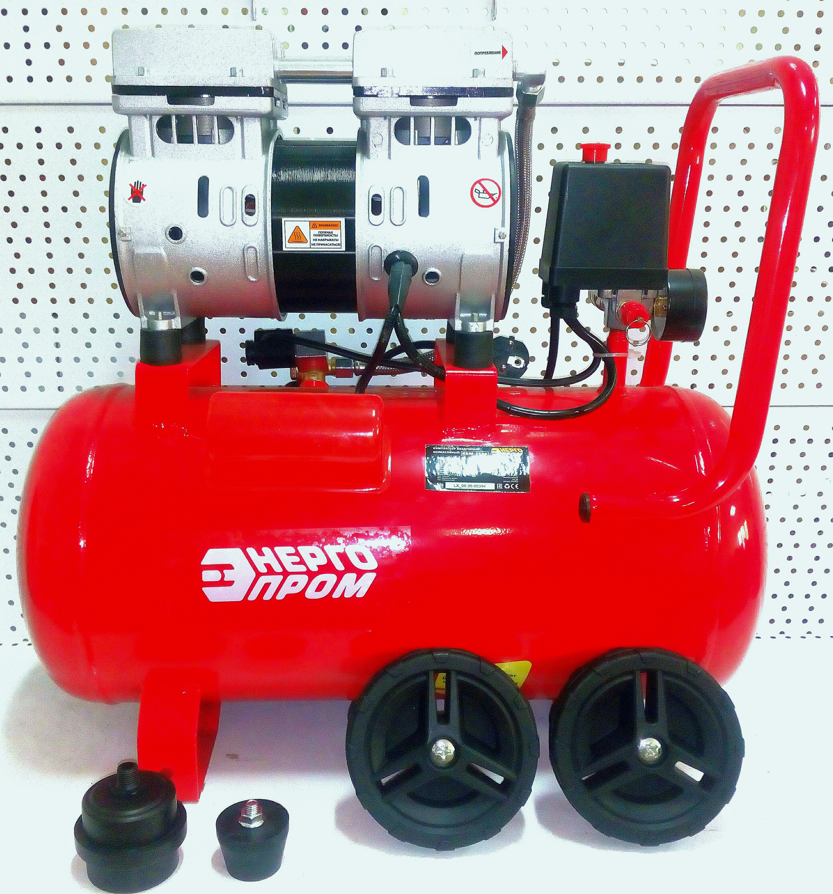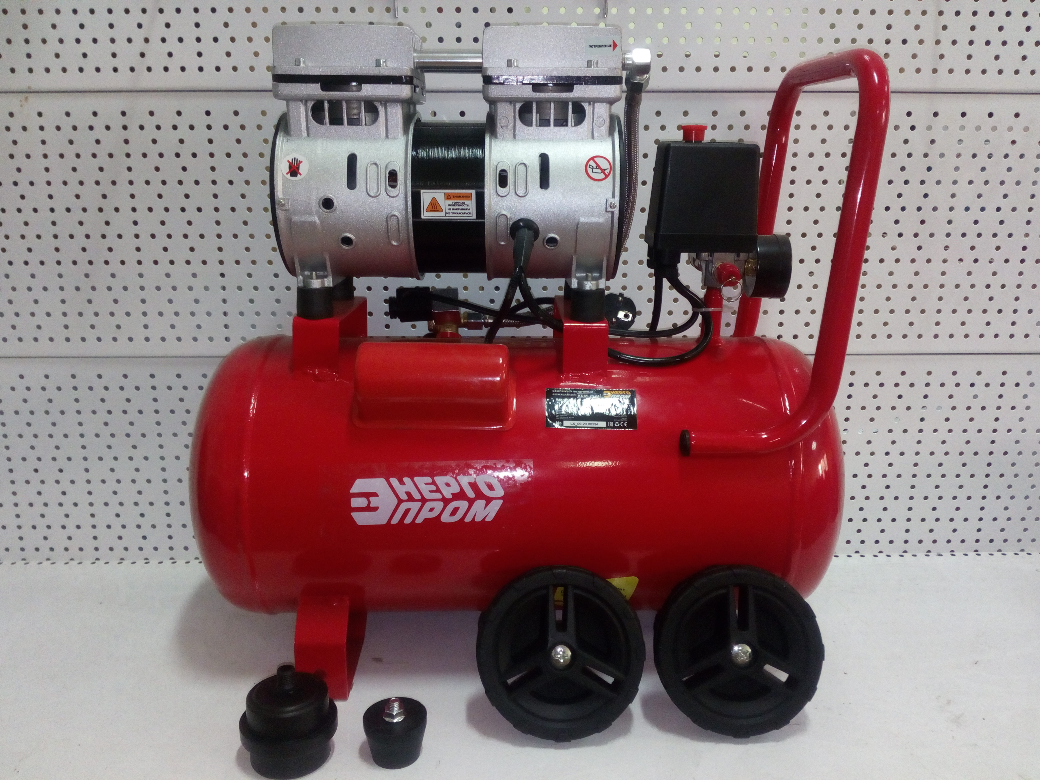 Компрессор БЕЗМАСЛЯНЫЙ двухпоршневой ЭНЕРГОПРОМ КБМ-2524 8 бар, 24 л, 160 л/ мин, 1100 Вт на колёсах