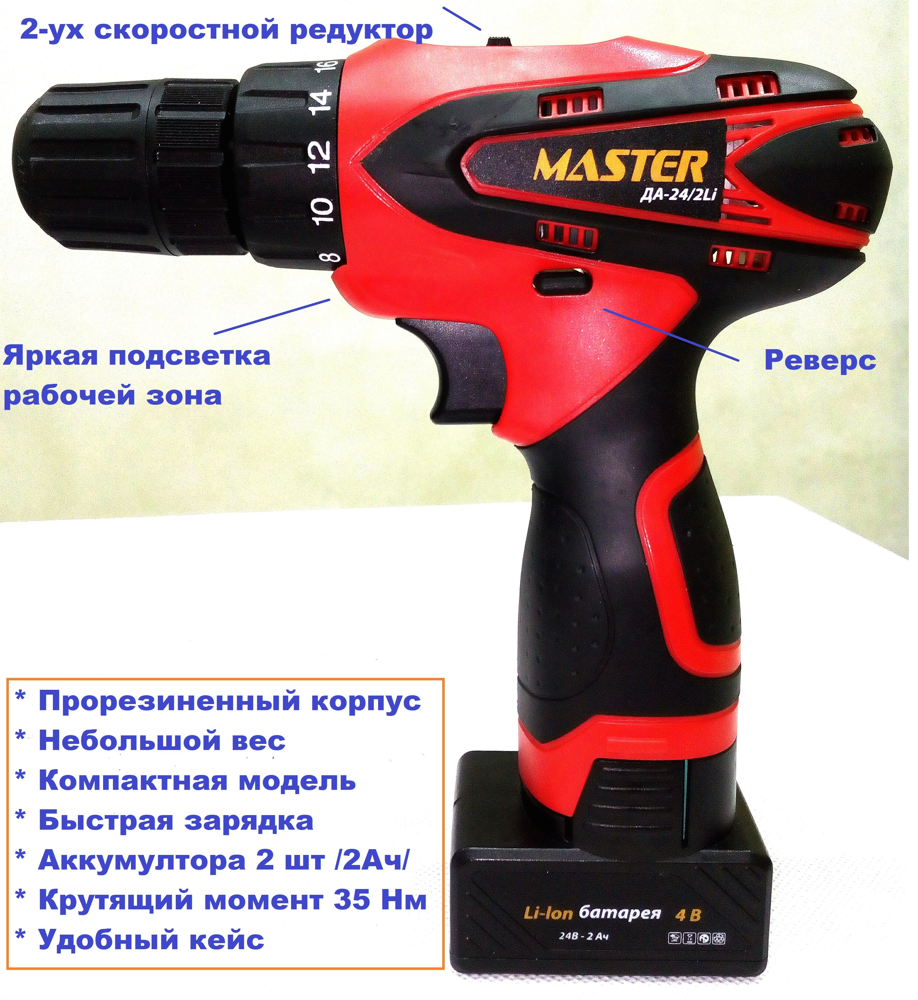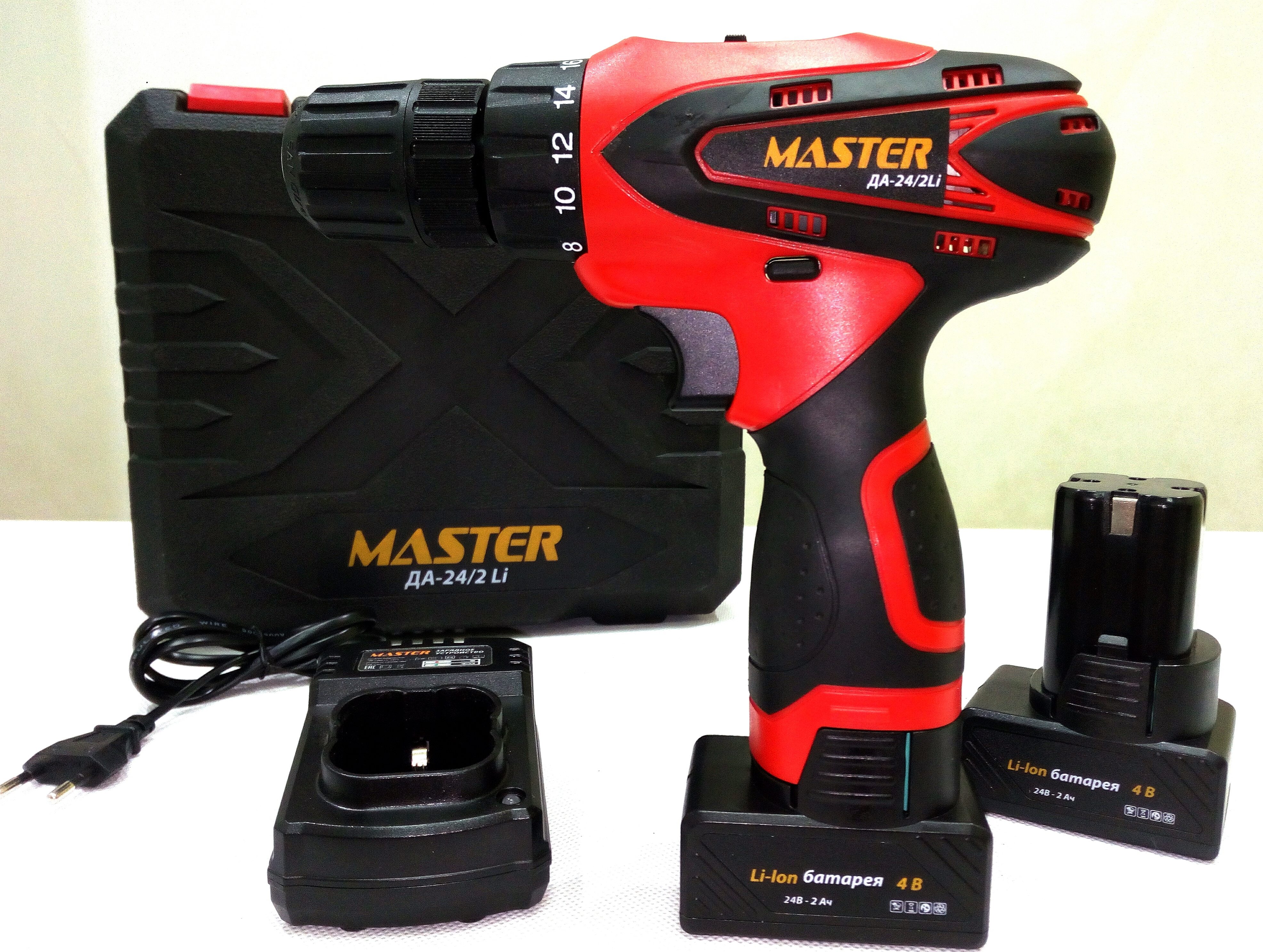 Шуруповерт аккумуляторный Master 24В 2акб Li-on ДВУХСКОРОСТНОЙ, японский усиленный редуктор, кейс.