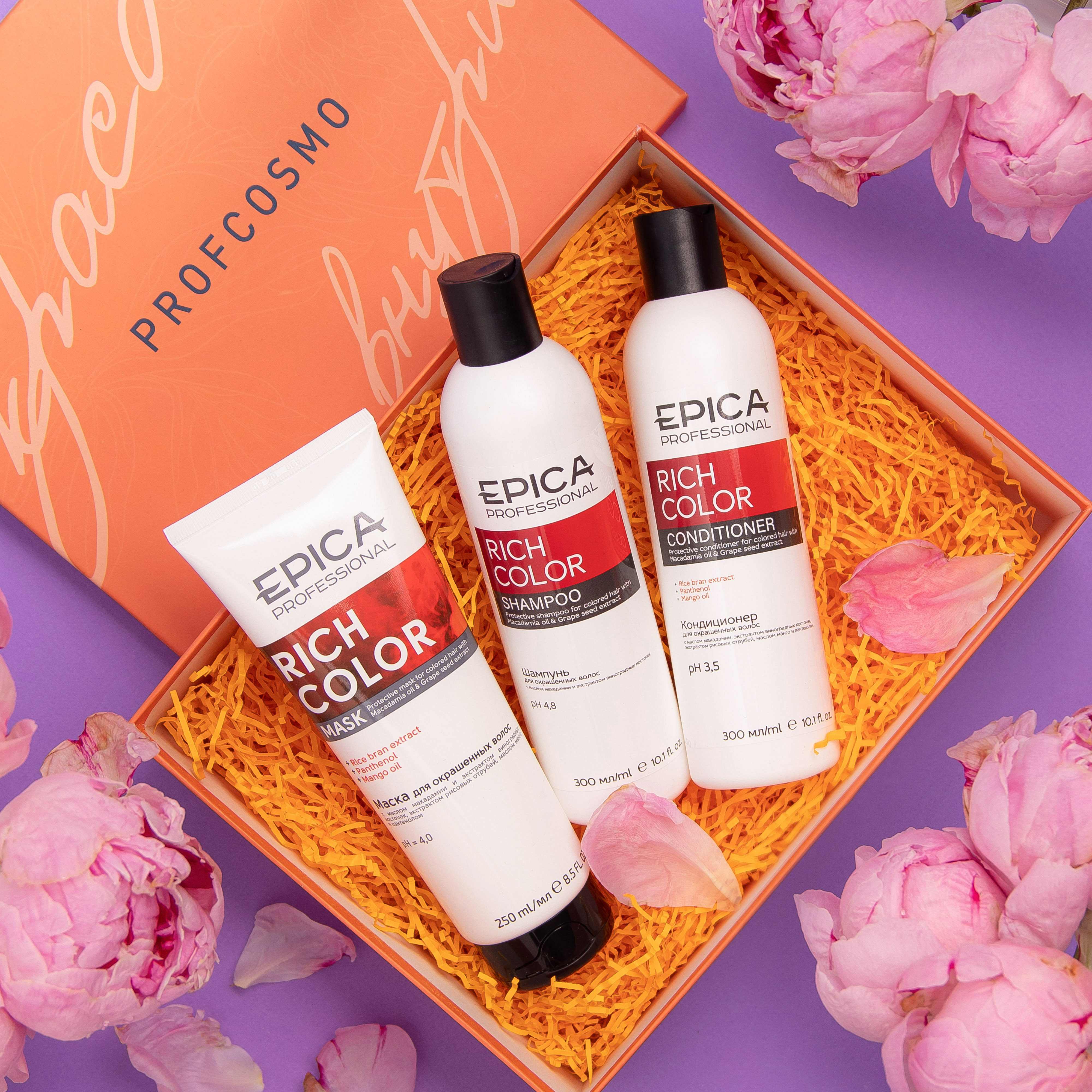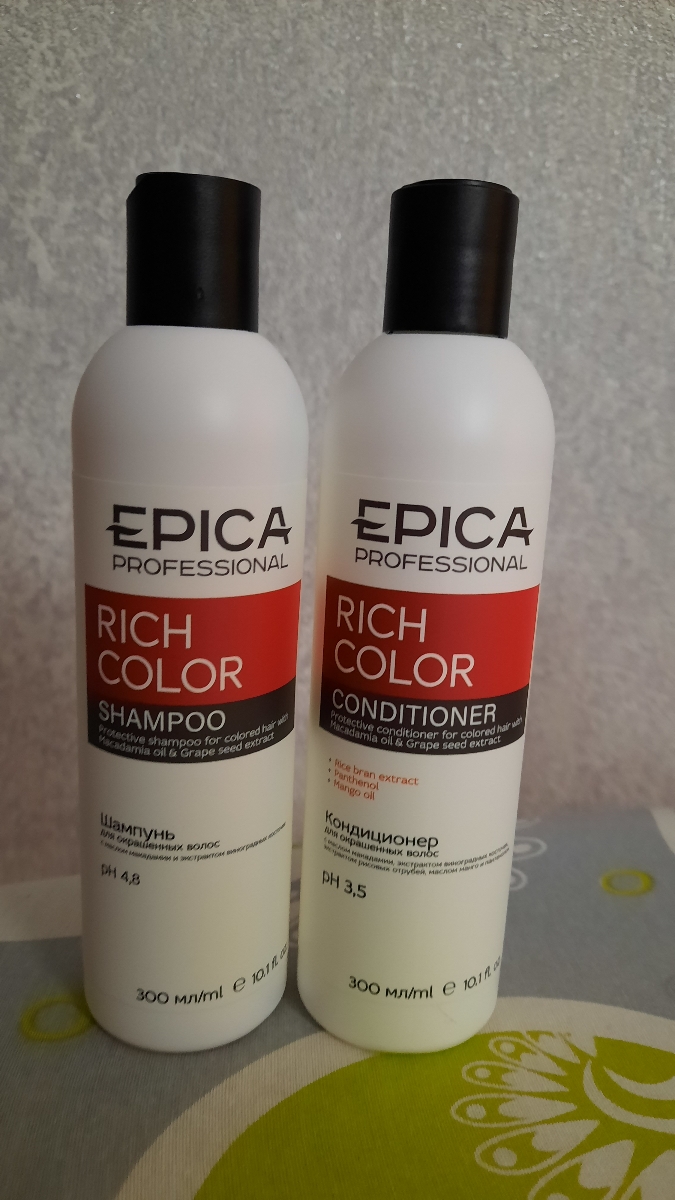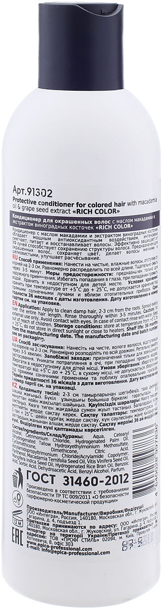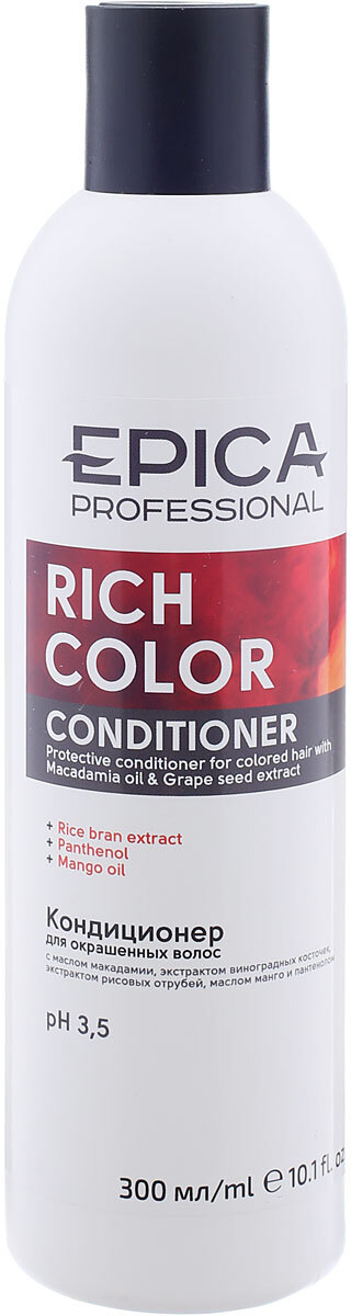 Кондиционер для волос Epica Professional Rich Color, с маслом макадамии и экстрактом виноградных косточек, для окрашенных волос, 300 мл