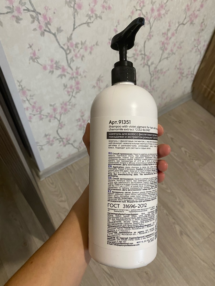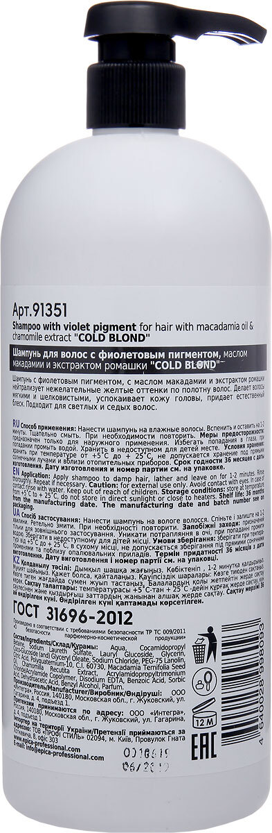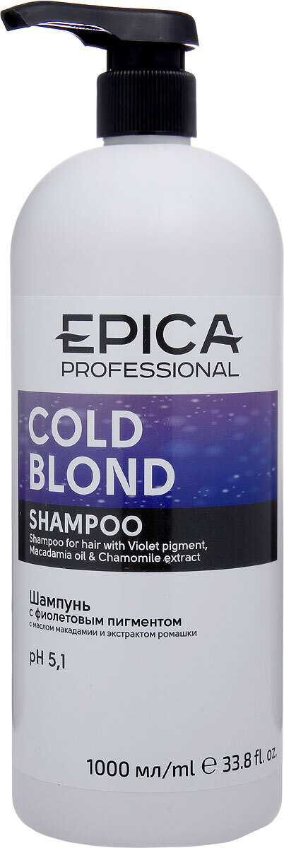 Epica Professional Шампунь для волос Cold Blond, для нейтрализации желтого оттенка, 1 л
