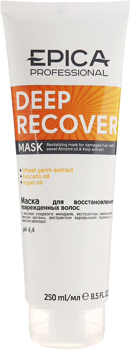 Epica Professional Маска для волос Deep Recover, с маслом сладкого миндаля и экстрактом ламинарии, для поврежденных волос, 250 мл