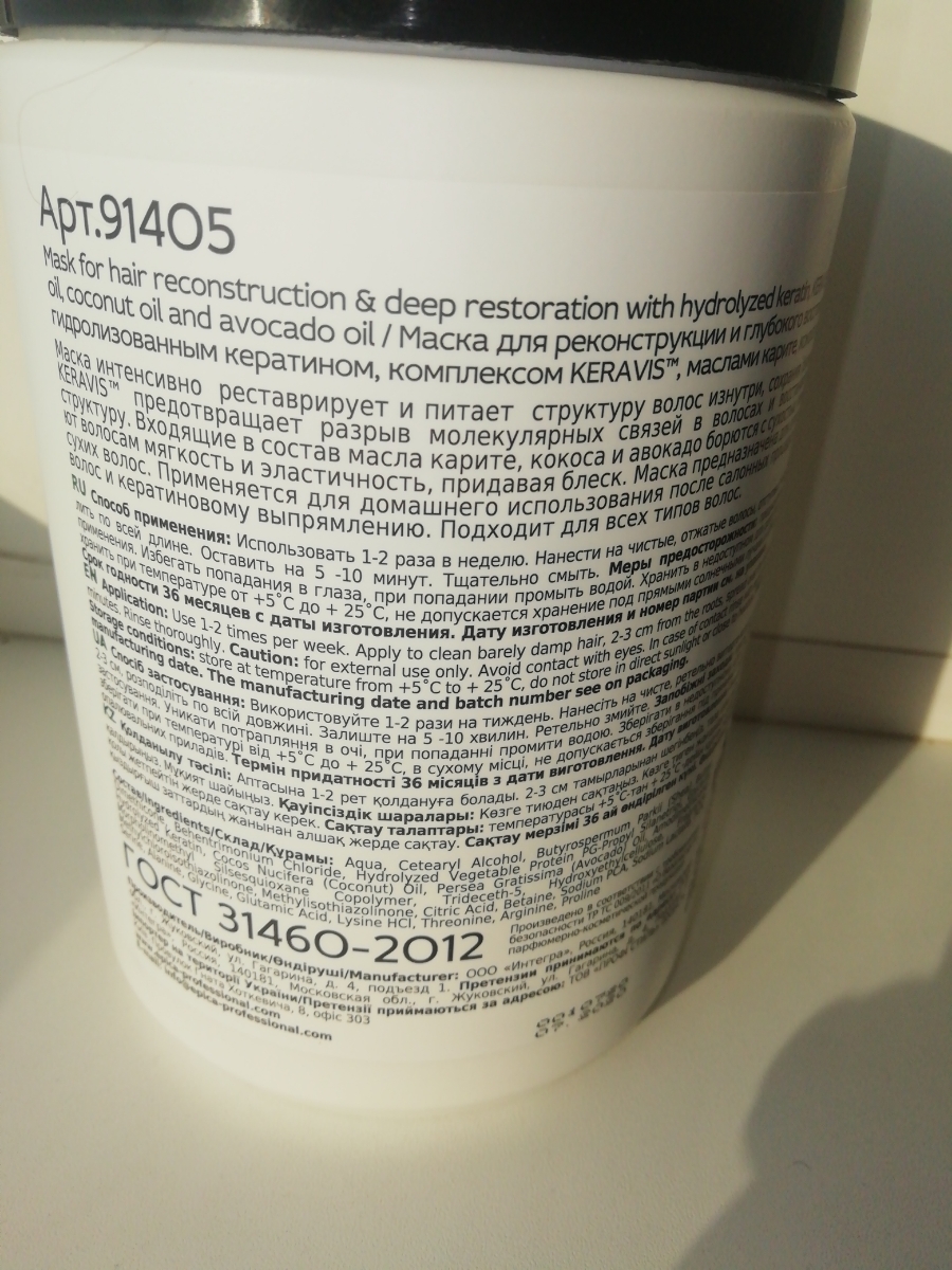 EPICA PROFESSIONAL Keratin Pro Маска для реконструкции и глубокого восстановления волос, 250 мл