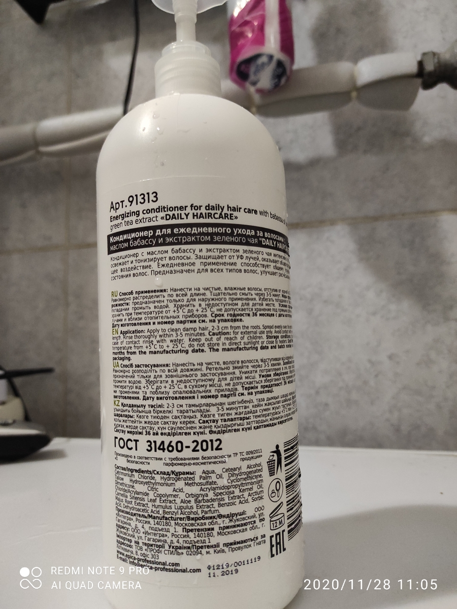 EPICA PROFESSIONAL Daily HairCare Кондиционер для волос с маслом бабассу и экстрактом зеленого чая, для ежедневного использования, 1000 мл