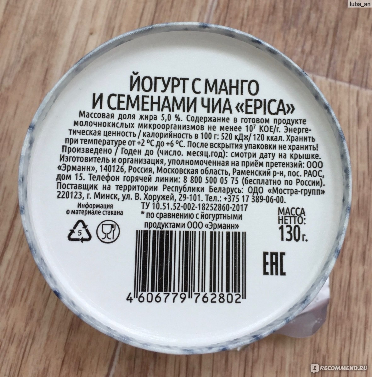 Йогурт Epica Манго и семена чиа, 5 %, 130 г