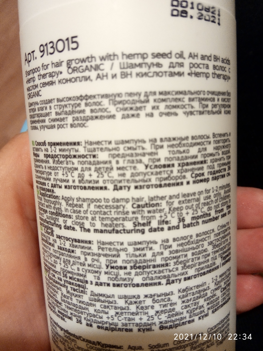 EPICA PROFESSIONAL Hemp Therapy Organic Шампунь для роста волос, 250 мл