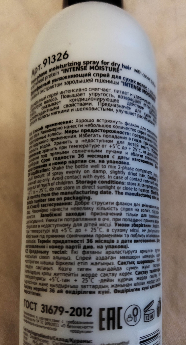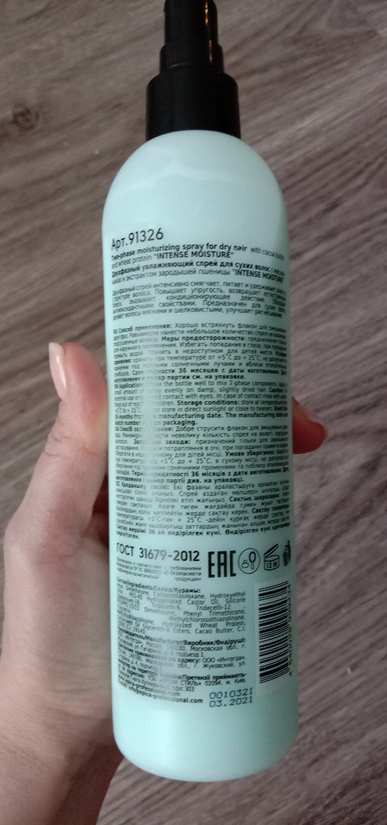 EPICA PROFESSIONAL Intense Moisture Спрей для сухих волос двухфазный увлажняющий, 300 мл