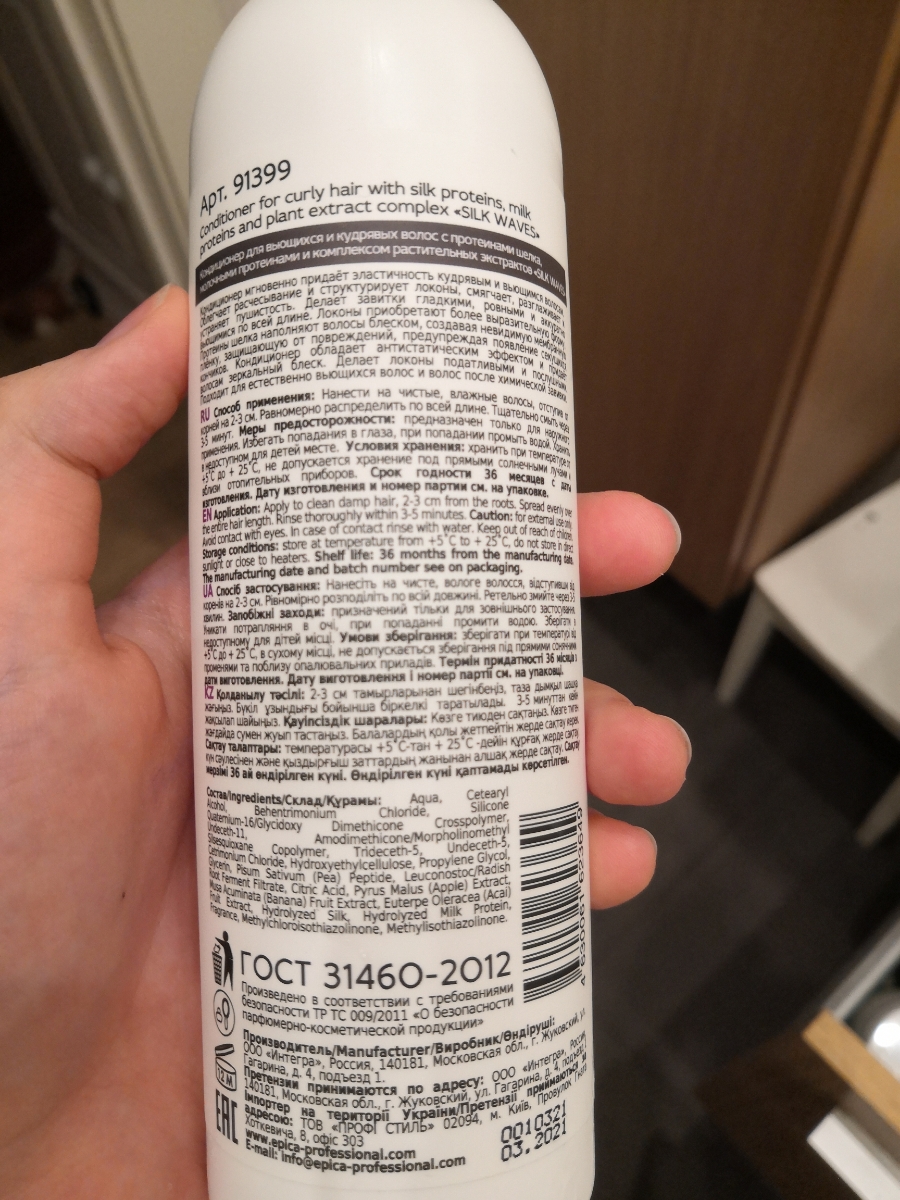 EPICA PROFESSIONAL Silk Waves Кондиционер для вьющихся и кудрявых волос, 300 мл