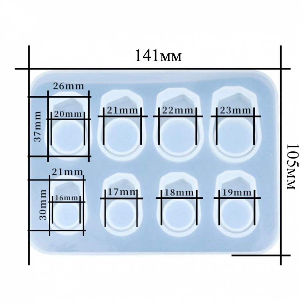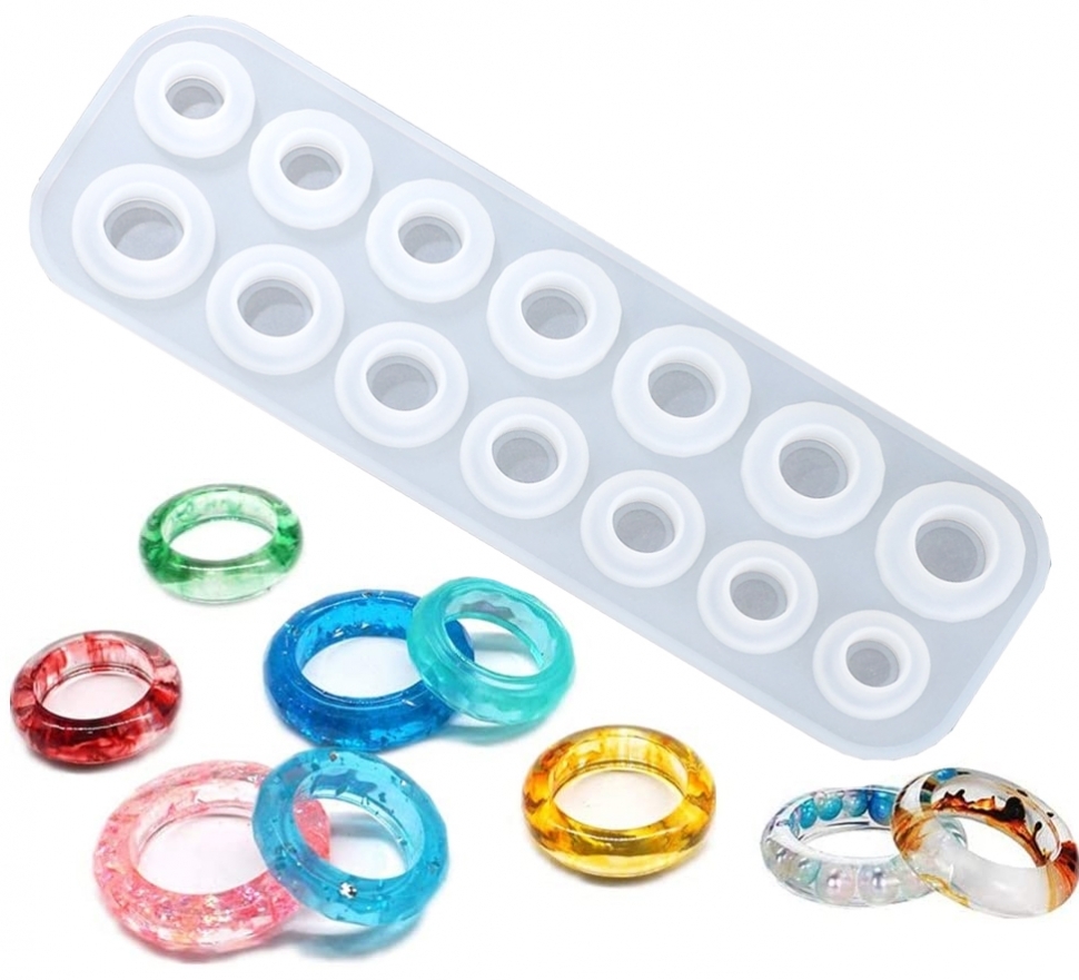 Силиконовый молд - Кольца (14 в 1), 25х8 см / Силиконовая форма для эпоксидной смолы