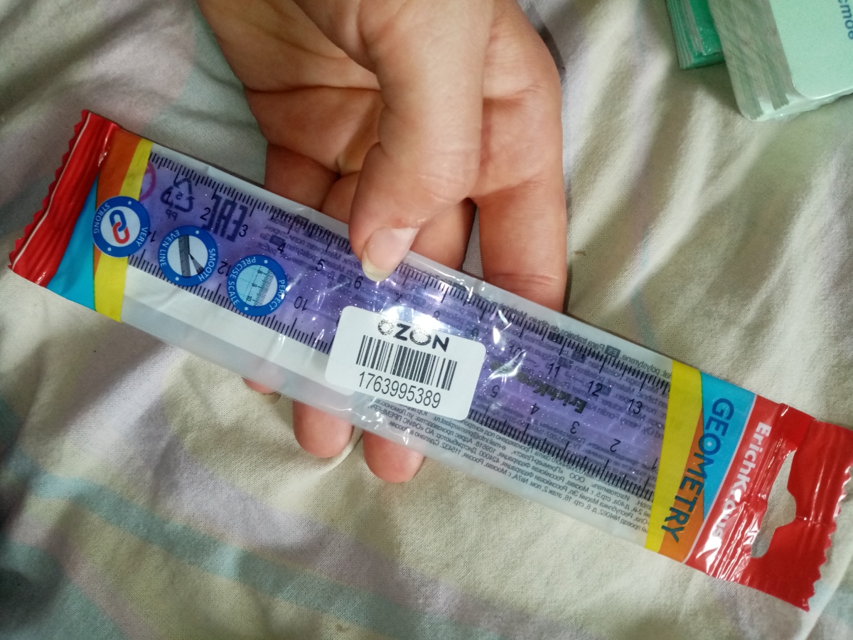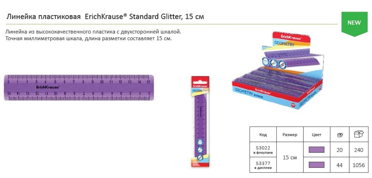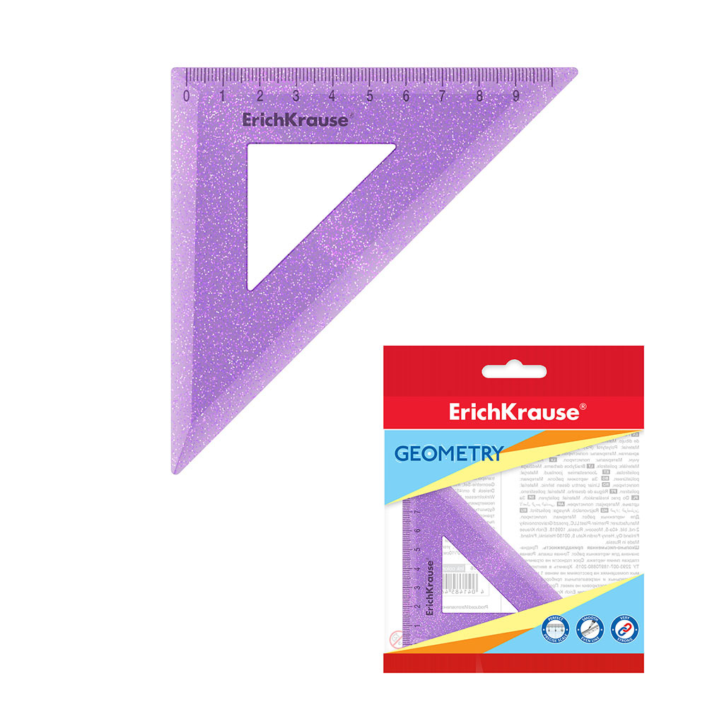 Угольник пластиковый ErichKrause Standard Glitter, 9см/45, сиреневый с блестками