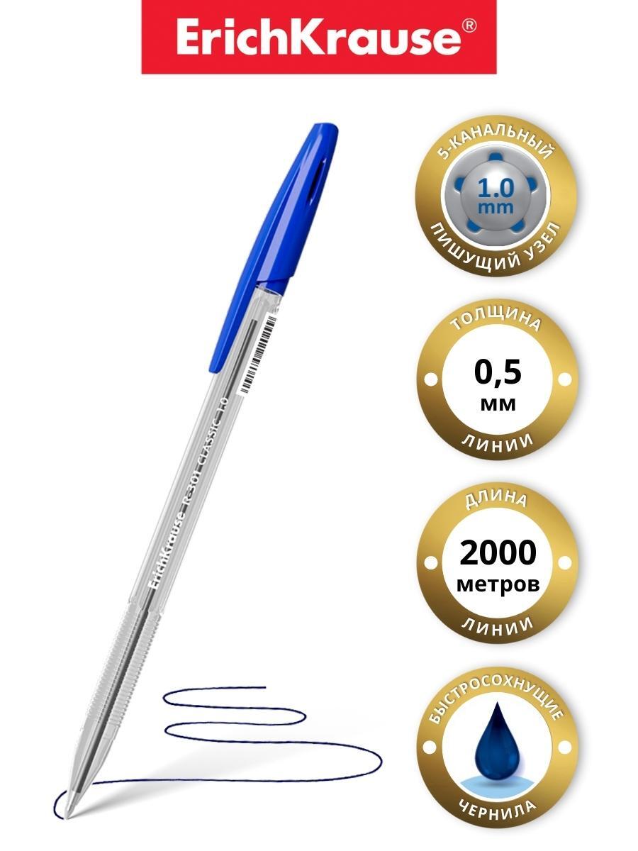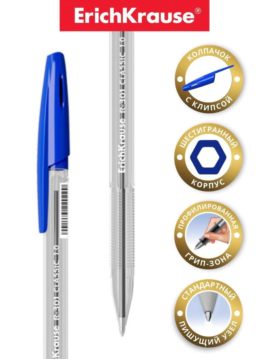 Ручка шариковая ErichKrause R-301 Classic Stick 1.0, цвет чернил синий (в пакете по 8 шт.)