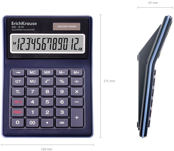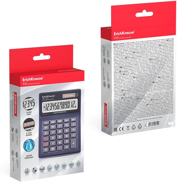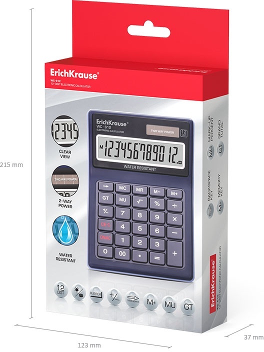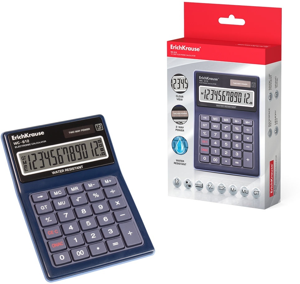 Калькулятор настольный ErichKrause WC-612, 12 разрядов, водонепроницаемый,синий