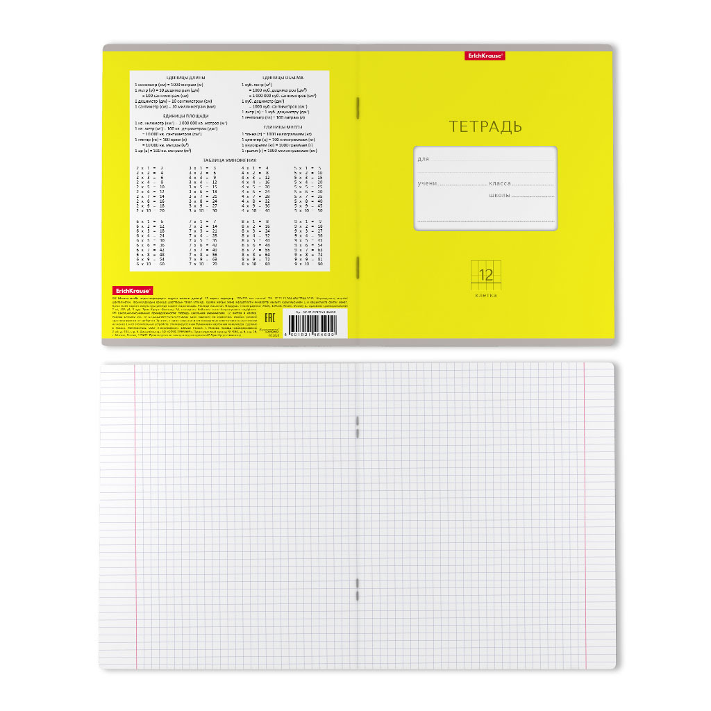 Тетрадь школьная ErichKrause Классика Bright, A5+, в клетку, 46490, желтый, 12 листов х 10 шт