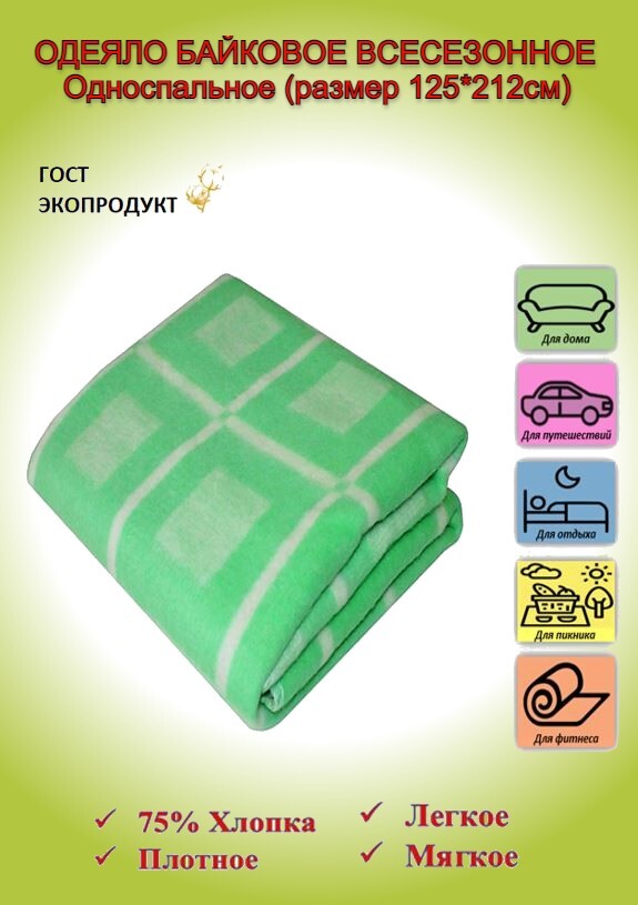 Одеяло Ермолино 1,5 спальный 125x212 см, Всесезонное, с наполнителем Хлопок, ПАН, комплект из 1 шт