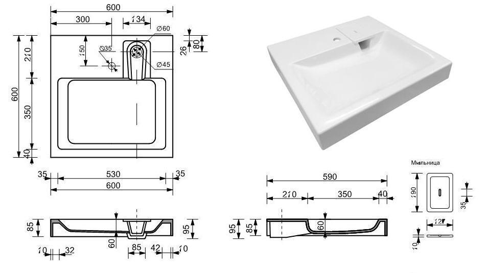 Раковина над стиральной машиной Эстет Lea 60х60 (с кронштейнами)