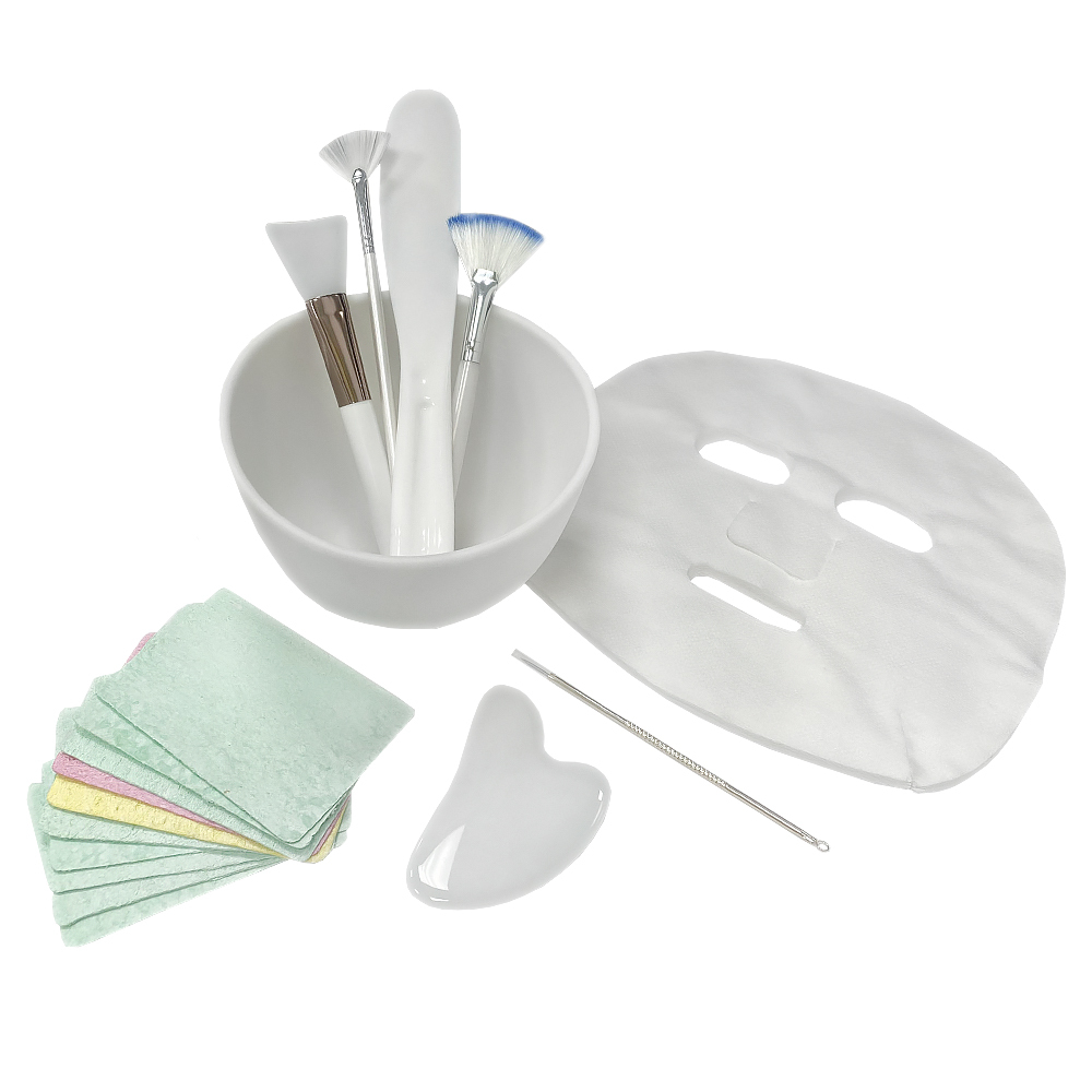 Набор косметолога (миска, кисть веерная, кисть, шпатели, скребок гуаша, спонжи)