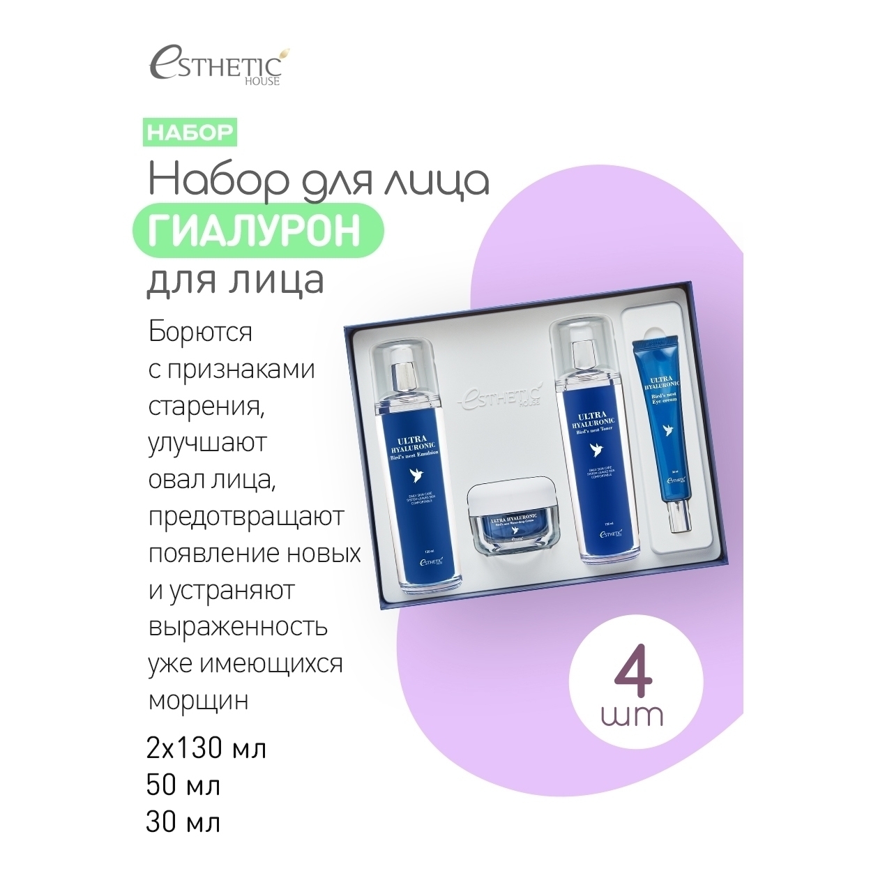 ESTHETIC HOUSE Увлажняющий набор для ухода за лицом Ultra Hyaluronic acid Bird's nest, 4 шт