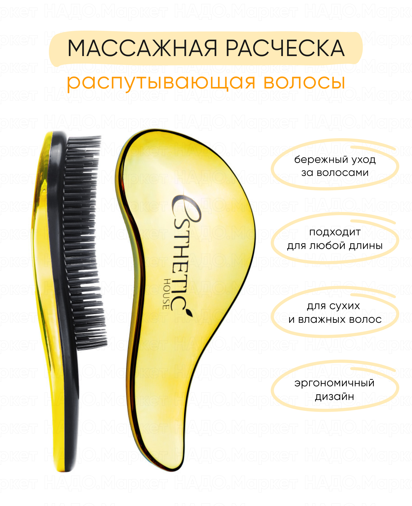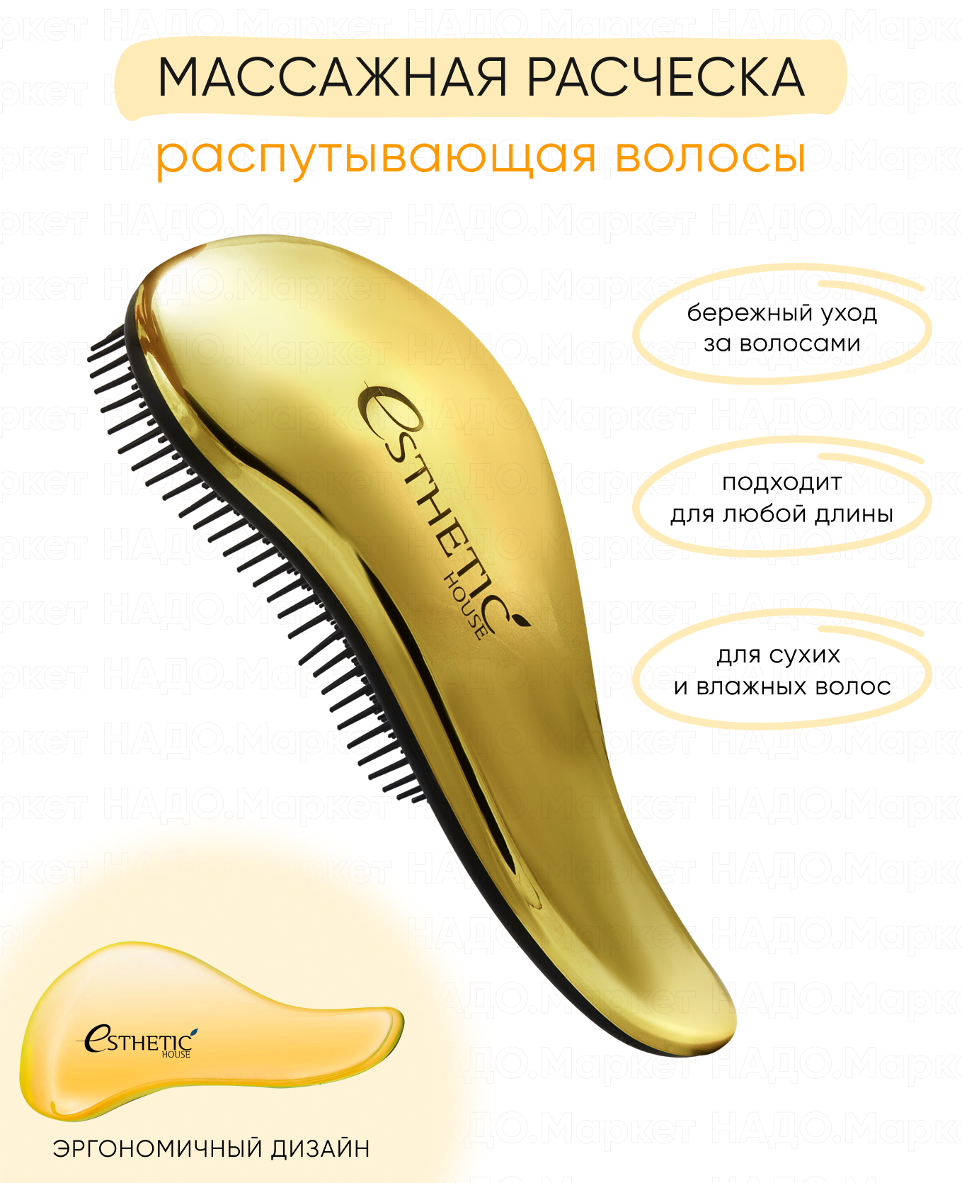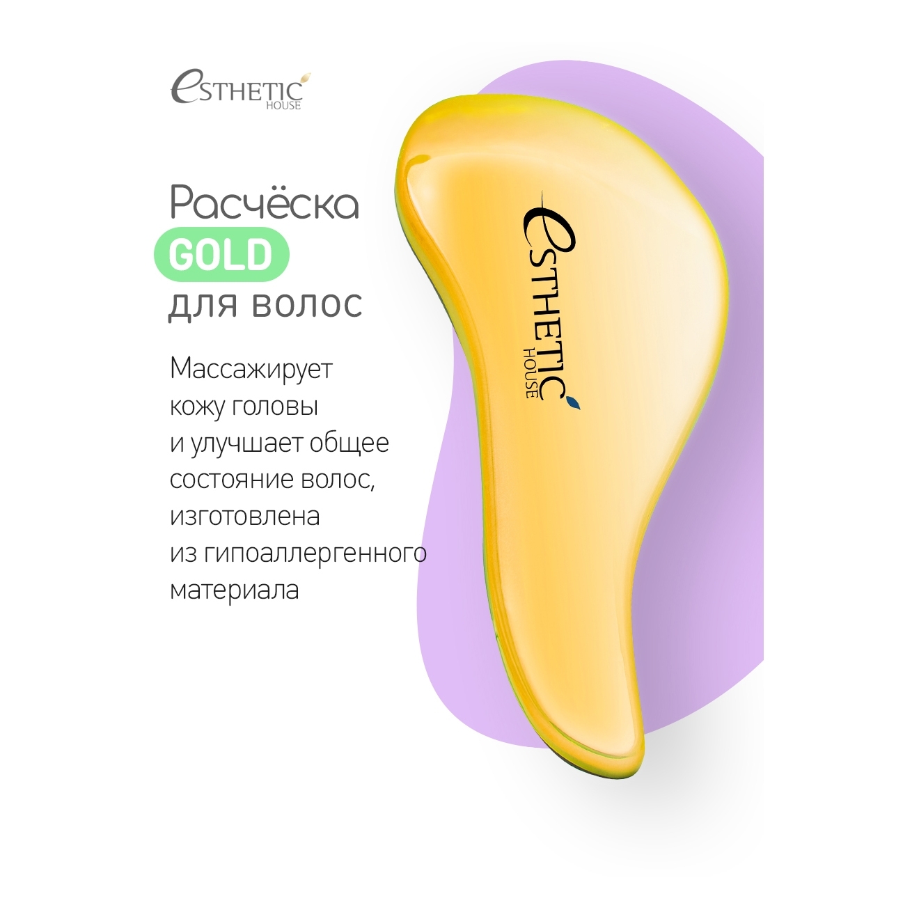 ESTHETIC HOUSE Расческа для волос, массажная щетка Hair Brush For Easy Comb Gold, золотистая