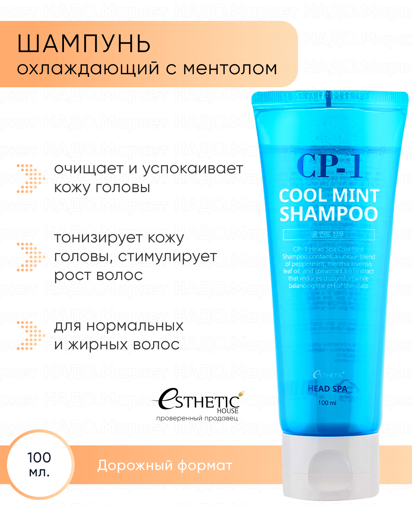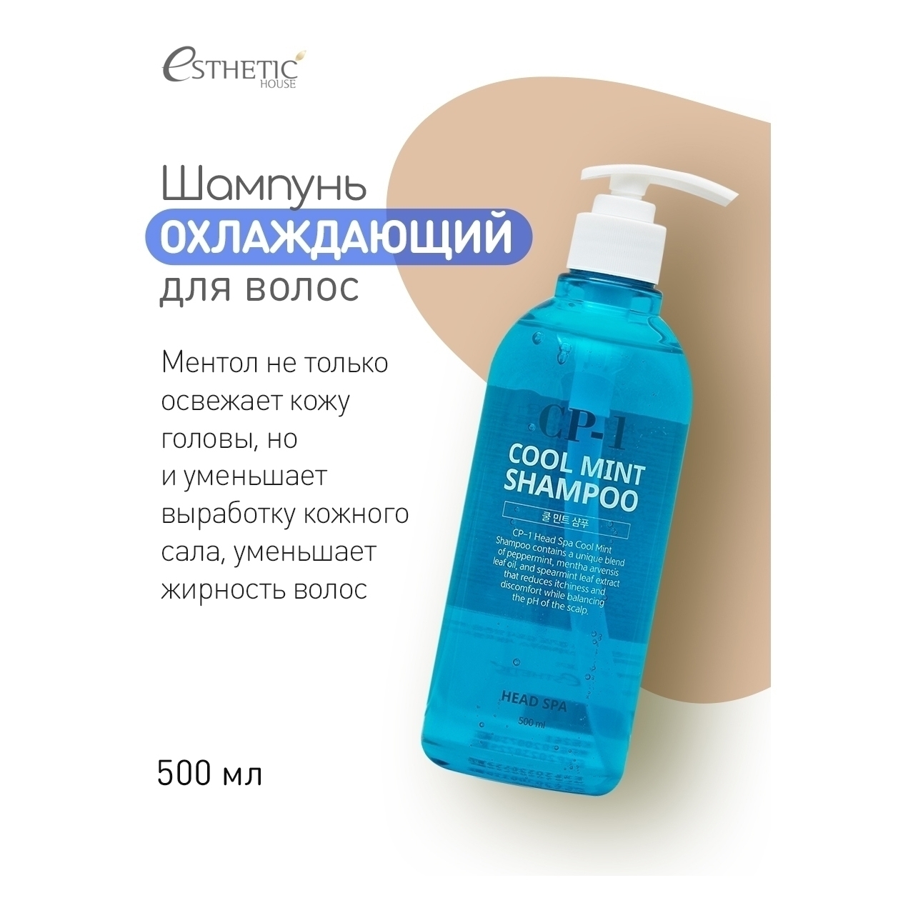 ESTHETIC HOUSE Охлаждающий корейский шампунь для жирных и нормальных волос, женский, бессульфатный CP-1 Head Spa Cool Mint, 500 мл
