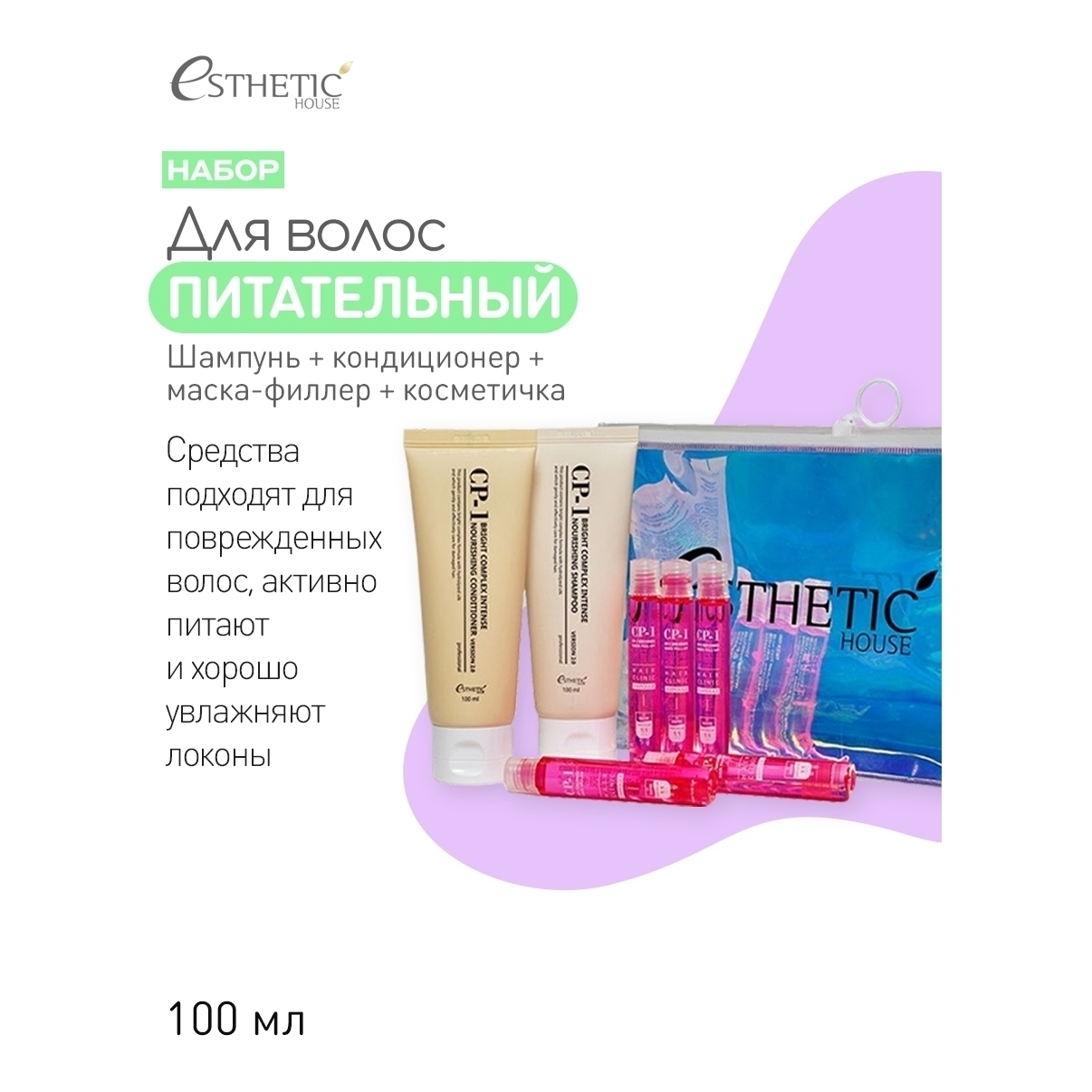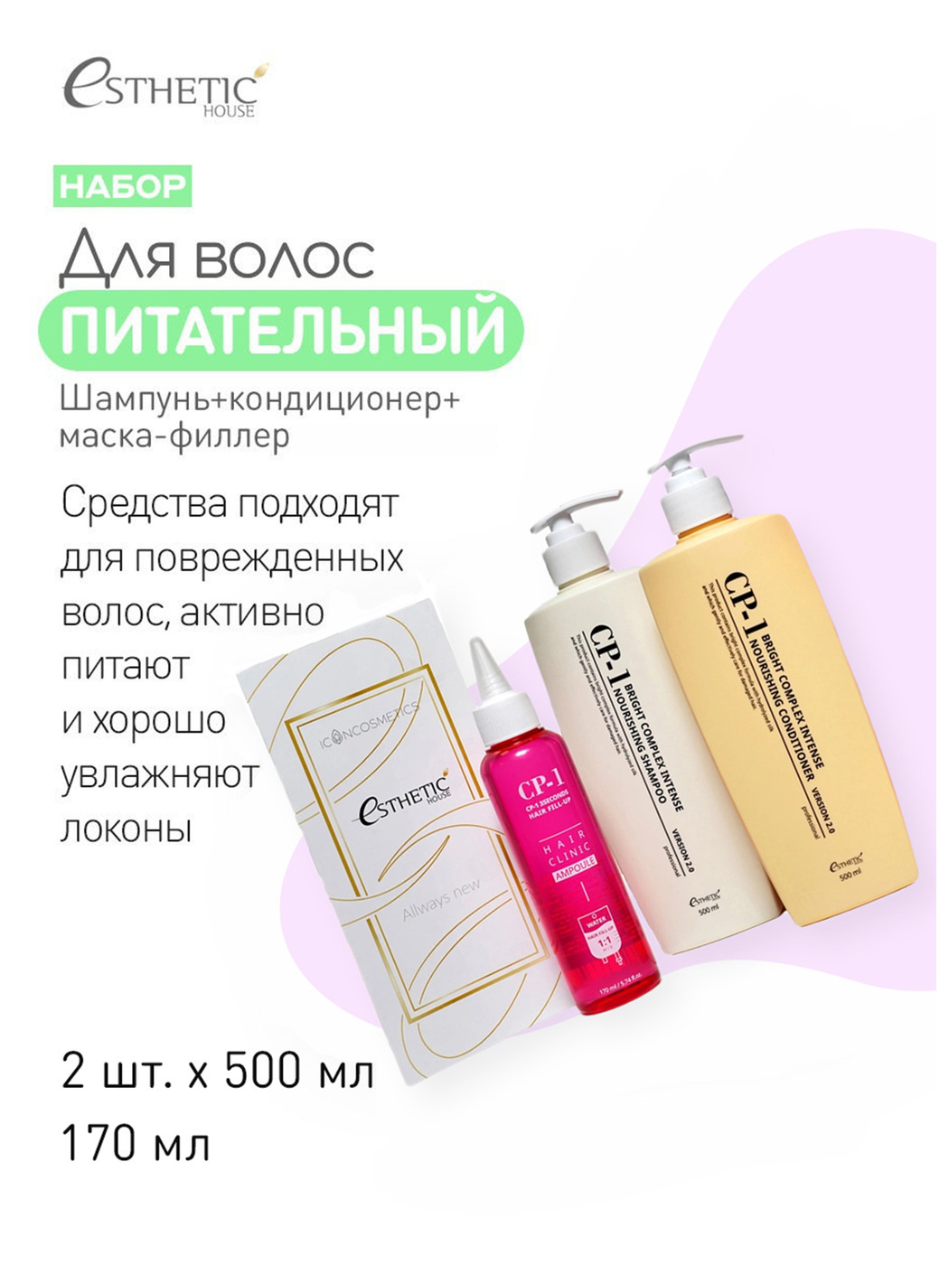 ESTHETIC HOUSE Восстанавливающий набор для ухода за волосами 500 (шампунь+кондиционер+маска-филлер), 3 шт