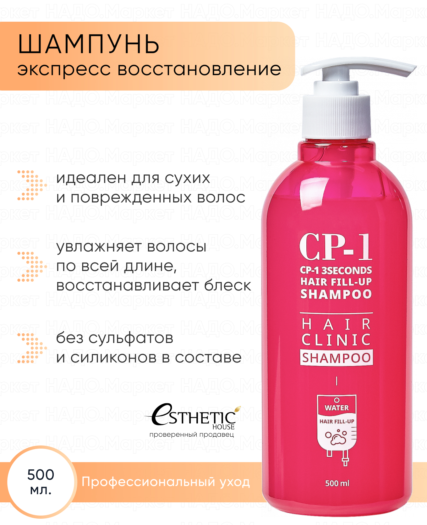 ESTHETIC HOUSE Восстанавливающий шампунь для гладкости волос / Корейский бессульфатный шампунь для волос CP-1 3Seconds Hair Fill-Up Shampoo 500 мл.