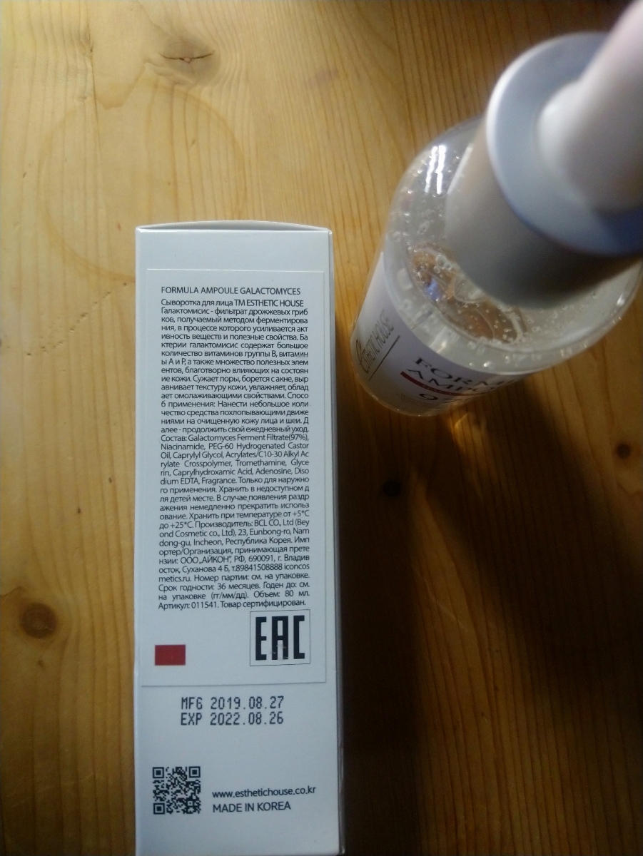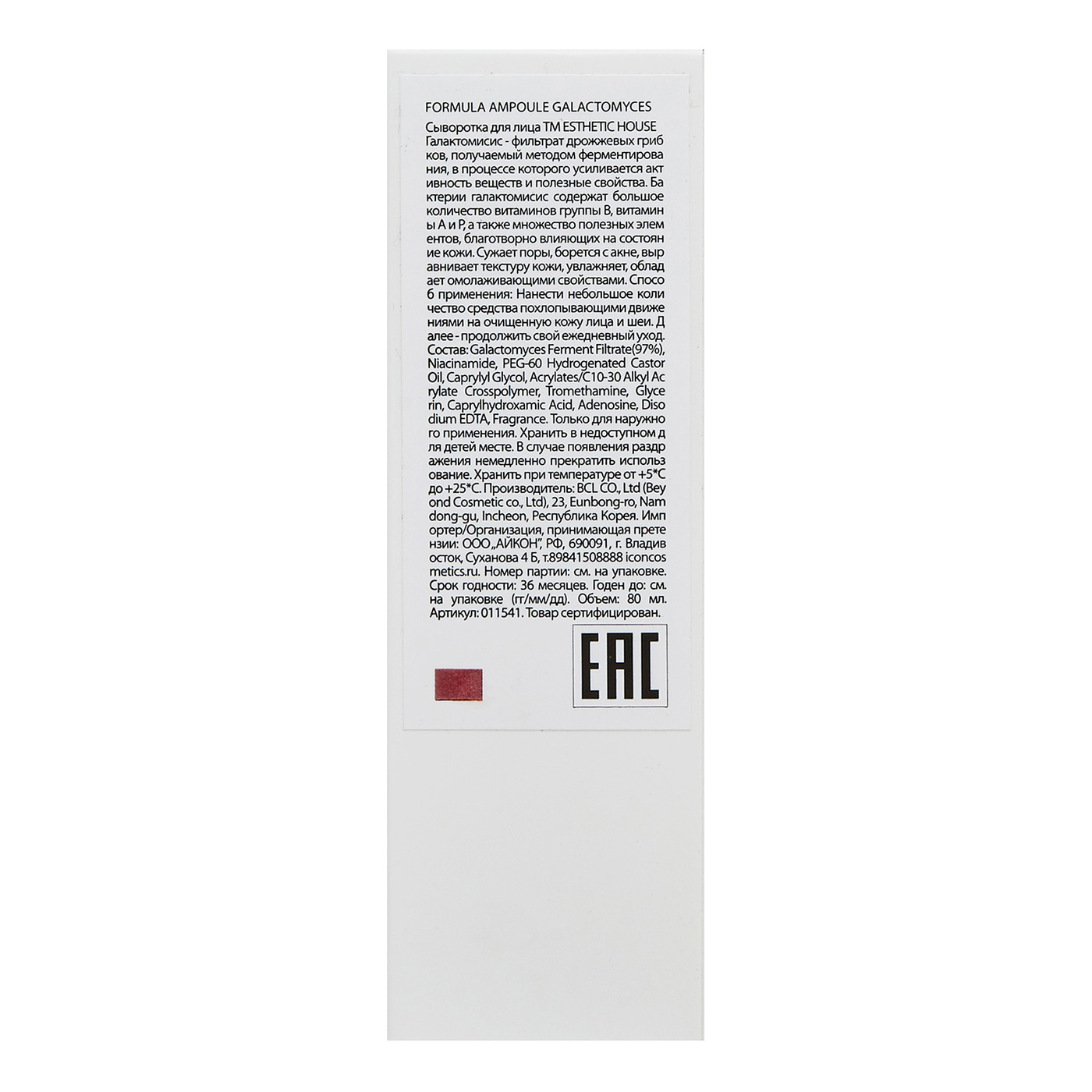 ESTHETIC HOUSE Увлажняющая корейская сыворотка для лица с витаминами, подходит для жирной кожи Formula Ampoule Galacomyces, 80 мл